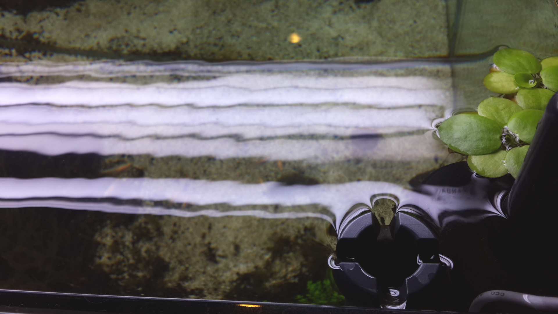 ติดเครื่องกรองผิวน้ำ ข้อดี คือ กำจัดสิ่งสกปรกลอยผิดน้ำ เช่น ฝุ่นต่างๆ เพิ่มออกซิเจนในตู้ เพราะเกิดการไหลเวียนของผิวน้ำและพ่นออกซิเจนออก