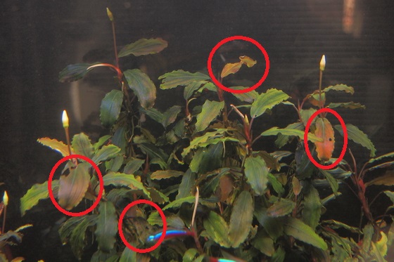 สังเกตุว่าใบเก่าจะมีรูหลายตัว ปกติใบใหม่จะไม่แหว่ง แต่ตอนนี้เริ่มมีการแหว่ง