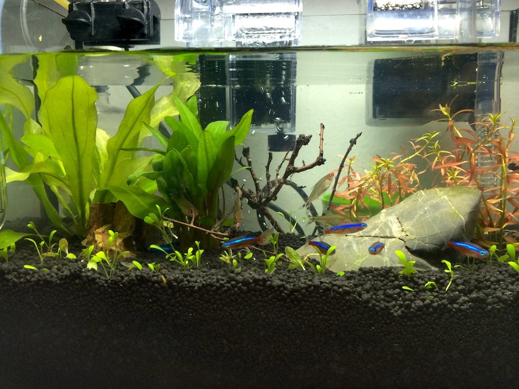 ทั้งหมดก็เป็นเซตพื้นฐาธรรมดา มีต้นไม้น้ำ, โคมไฟ,CO2 จากยีสต์ และก็ตัวกรองแขวน วันแรกที่ติดตั้งก็ยังไม่มีปลาครับ