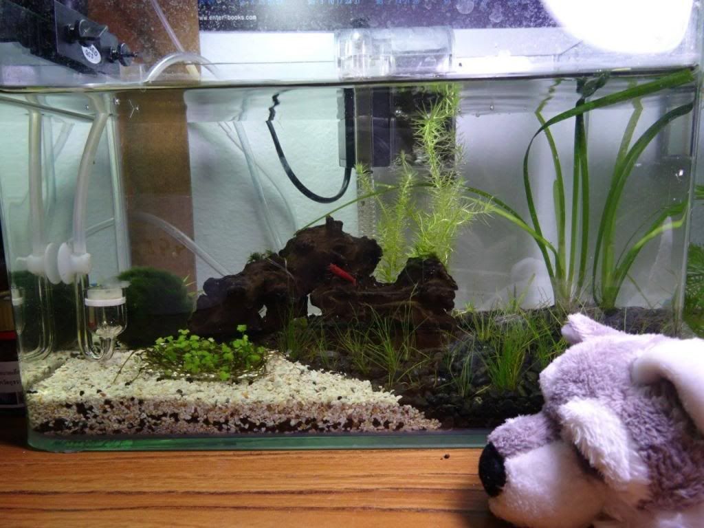 พอจัดได้ซักอาทิตย์ก็นำปลากัดตัวเมียมาเลี้ยง