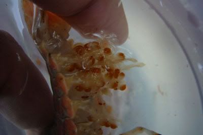 อันนี้เป็นลูกกุ้งที่อยู่กับแม่กุ้ง 3 สีครับ ตอนนี้ไข่เริ่มเห็นลูกตาลูกกุ้งตัวน้อยๆแล้ว ก็คงต้องลุ้นกันต่อไปครับ ว่าจะเป็นตัวกันเมื่อใด : )