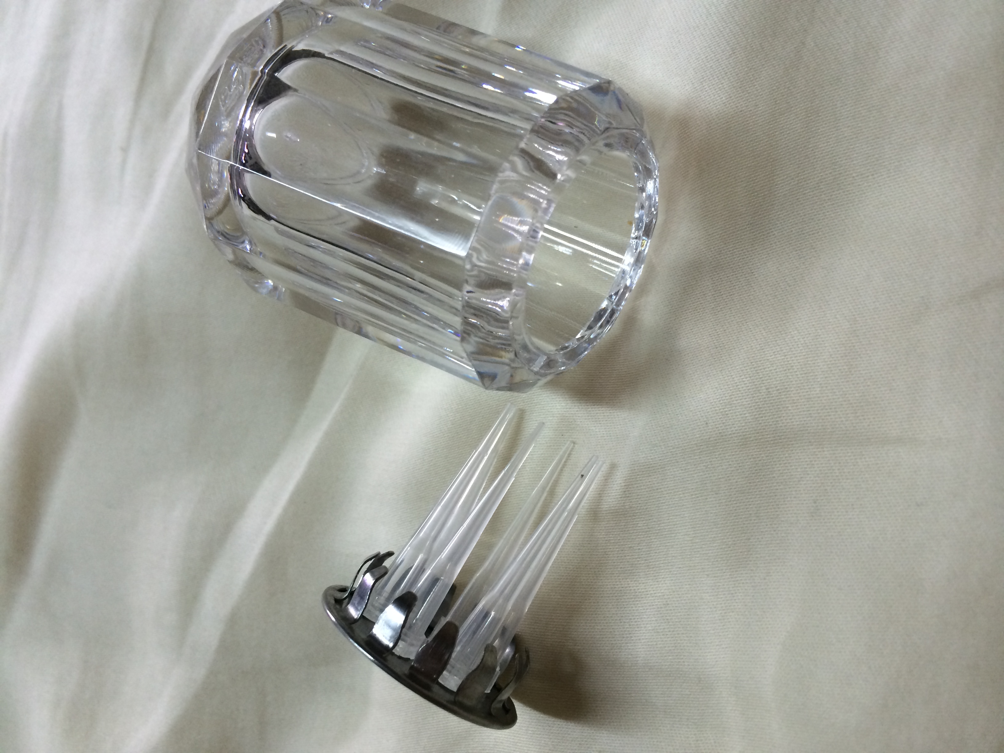 ถอดออกมาได้เป็นอย่างนี้ครับ จะเห็นได้ว่าตรงฝา ด้านในมีซี่ๆยื่นออกมาเอาไว้ทำให้ฝาปิดเข้าไปได้แน่น หากวันไหนมันหลวม ก็งัดออกมาให้แน่นได้ครับ