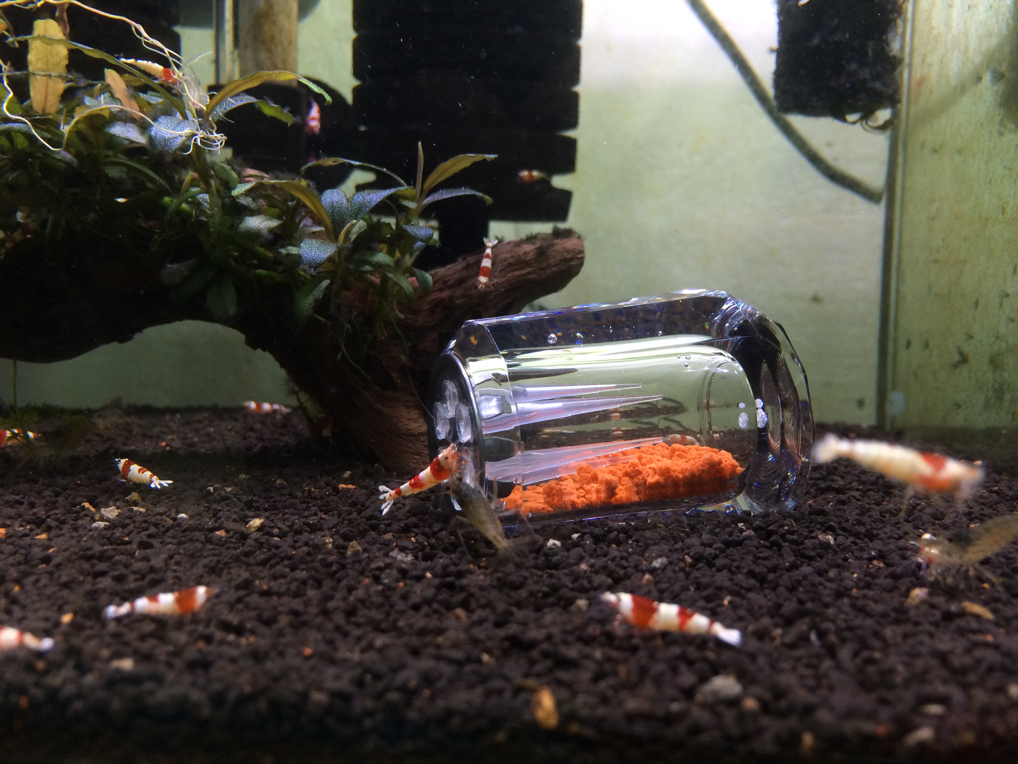 ใส่เตตร้าบิท นิดหน่อย หรือถ้ามีซากของกุ้งปลา ก็ใส่ได้ครับ และใส่น้ำให้เต็มครับ จะได้ไม่ลอย เสร็จแล้วก็เอาฝาปิดเข้าไปให้แน่นตามเดิม
