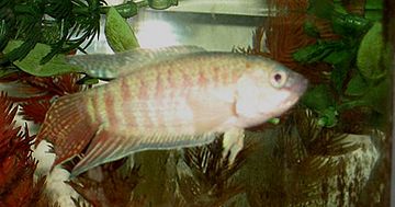 ปลาพาราไดซ์เป็นปลาตู้ชนิดหนึ่งที่มีรูปร่างสวยงาม คล้ายกับปลากระดี่ ถิ่นกำเนิดจากทวีปเอเชียตะวันออกเช่น ประเทศจีน ไต้หวัน เกาหลี และเวียดนาม ปลาชนิดนี้มีคุณสมบัติเลี้ยงง่าย อดทน เหมาะสำหรับนักเพาะพันธุ์สมัครเล่น ปลาพาราไดซ์มีขนาดลำตัวค่อนข้างแบน ครีบทุกครีบยาวแหลมเด่นเป็นพิเศษ ส่วนปลายครีบหางเว้าชี้แหลมยื่นยาวออกไปทั้งส่วนบน และส่วนล่าง ปลาพาราไดซ์ดั้งเดิมลำตัวสีน้ำตาลอมแดงสลับด้วยสีเงินยวง   ส่วนปลาพาราไดซ์เผือกลำตัวจะเป็นสีเผือกเหลืองอมชมพู สลับด้วยสีเงินยวง   ตรงบริเวณเหงือกมีสีส้มแดงแต้มด้วยสีดำเป็นจุดเห็นชัดเจนข้างละหนึ่งจุด ปลาบางตัวมีครีบหางสีแดง และยังมีจุดเล็ก ๆ สีดำกระจายไปทั่ว ครีบหลัง และครีบก้น สีดำอมน้ำเงินยวง แต่ตัวผู้ส่วนนี้มีสีแดง ก้านครีบแข็งและคม