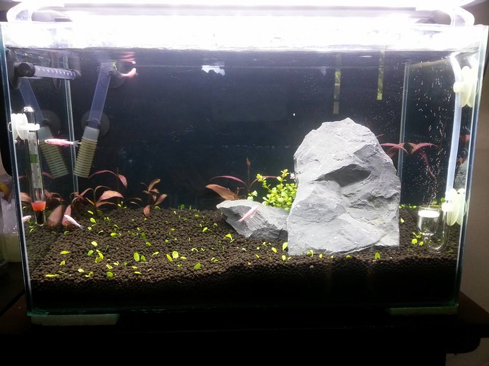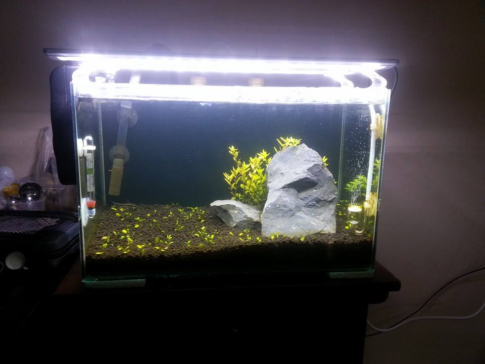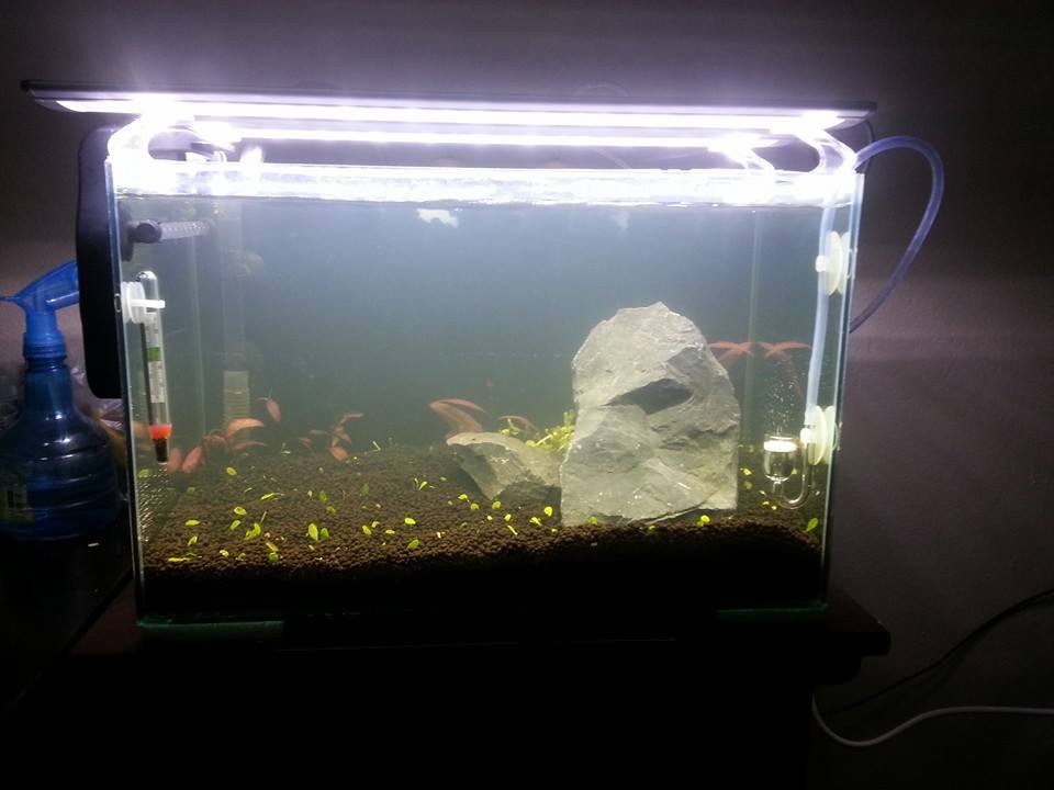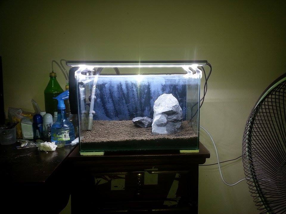 พอดีพึ่งเปลี่ยนน้ำเย็นนี้ ตอนแรกตะไคร่น้ำตาลเกาะหินเต็มจนน่าเกลียด เลยจัดการเอาแปรงสีฟันถูซะ