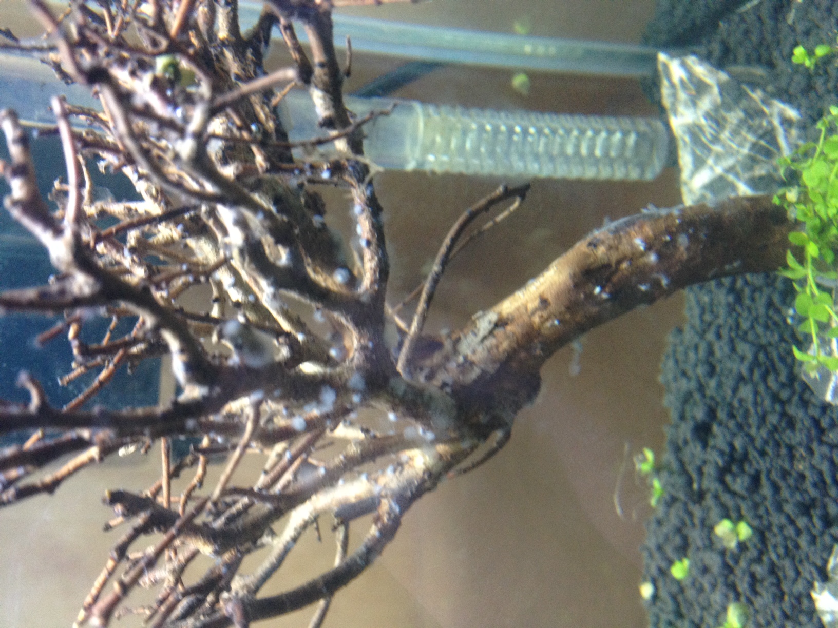 เมือกจากขอนไม้ครับ ตอนเปลี่ยนถ่ายน้ำพยายามเอาสายยางดูดออก