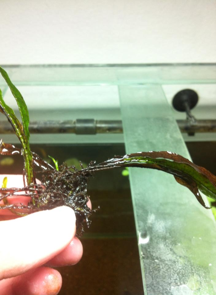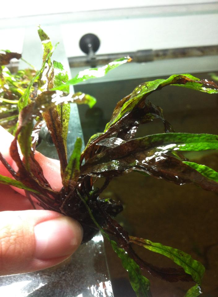 รากดำนี้ขยายพันธุ์หรืองอกใบใหม่ได้ดีในน้ำเย็นอุณหภูมิประมาณ27-28 นี่ใช่รึป่าวครับที่บ้านตอนที่ติดพัดลมอยู่ราวๆ28-29ครับเห็นรากงอกออกมาเยอะแยะเลยพอไม่ได้ใช้พัดลม ก็เหมือนจะไม่ค่อยงอกเลยครับ ที่บ้านเลี้ยงปลาแพะครับใช้ทรายปูพื้นตู้ไม่ได้ใส่ปุ๋ยน้ำเลย นานๆจะใส่ น้ำEM ซักทีครับ อาการแบบในรูปเลยครับ พวกต้นหรือใบที่มันยังมีสีเขีียวอยู่บ้างถ้าเกิดผมเอาไปไว้ในอ่างบัวนี่มันจะขยายพันธุ์ต่อได้รึป่าวครับ เพราะตอนนี้แต่ะละต้นโดนปลาคุ้ยใบหลุดล่วงไปเยอะเลยครับ ยังไงขอคำแนะนำในการเลี้ยงหน่อยนะครับ พอดีหากระทู้เก่าๆแล้วหาไม่เจอเลยขออนุญาติตั้งถามใหม่นะครับ