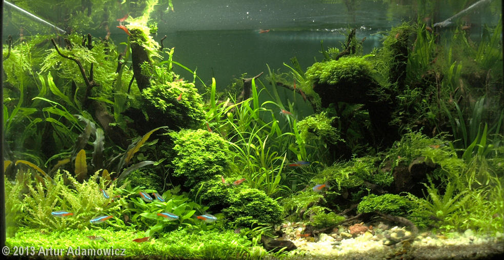 ดูจากขนาดตู้เราเป็นหลักนะครับ จัดแนวป่าๆรกๆจัดได้ครับ....แต่จะเลือกพรรณไม้ชนิดเดียวกันกับต้นแบบคงยากอยู่ ต้นแบบคิดว่าน่าจะตู้24ขึ้นไปแน่นอน เอามาลงตู้ 12-16 คงได้แน่นแบบอึดอัดมากกว่าแนวป่า