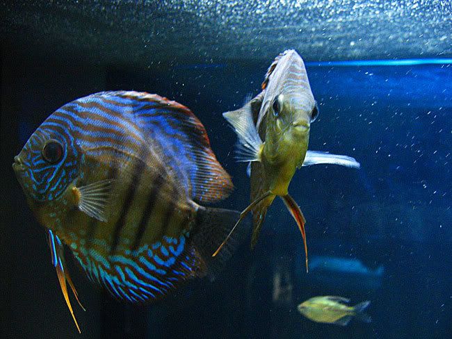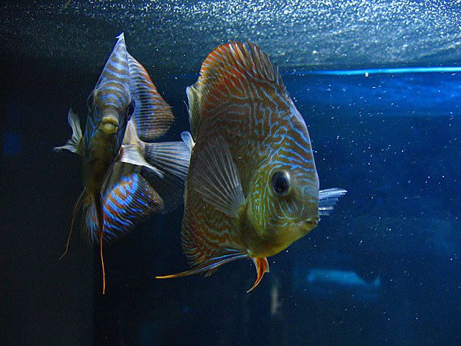 คู่นี้รักกันดี จริงเค้ามีคู่กันอยู่แล้ว แต่เค้าเลิกกัน ยังกับคนแน่ะ เจ้าสาวลายงูปิ๊งกับหนุ่มเจ็ดสี แต่หนุ่มเจ็ดสี ไม่หล่อไม่เท่ เลยมาปิ๊งหนุ่มใหญ่ปอม5สี ตอนคู่เก่าเค้า.....ตรอมใจไปเลยงับ.... cryingrun มีน้องเจ็ดสีอีก 2 ตัว หลบอยู่ในตู้นี้แหละ ไปหลบใต้ขอนหมดเลย หนุ่มใหญ่5สี มาจากร้านกรีนหรือร้านพี่เดแหละ ครอสปลาปอมป่ามา ส่วนเจ้าสาวลายงูมาจาก At Discus มาแรกๆกินน้อยมาก ไม่มีแรง ต้องประคบประหงมมากที่สุดในบรรดาปอมทั้งหมด hide2