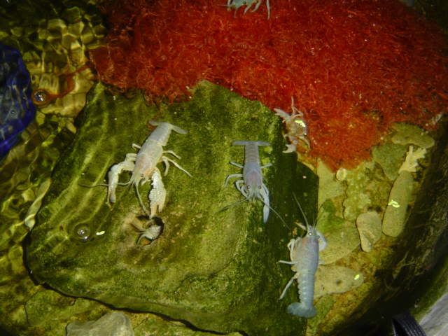 กินได้บ้างเหมือนกันครับ แต่ส่วนใหญ่เน้นเศษอาหารครับ ทำร้ายกุ้งได้ ถ้ากุ้งป่วยหนักๆอยู่ครับ อาจจะโดนแทะได้ แต่ปกติ ต่างคนต่างอยู่ครับ