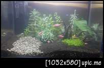 สวัสดีคับ อาทิตย์ที่แล้วบังเอิญไปเดินสวนละติดใจตู้ไม้น้ำ อยากจัดบ้าง วันนี้สายๆเลยไปหามา ตู้ขนาด 15 นิ้วคับ จัดเสร็จแล้วเป็นแบบในภาพ รู้เลยคำว่าตู้งอก นี่วางแผนตู้สองและคับ ในตู้รู้จักอยู่สองต้น คือเพิลกราส กับสาหร่ายฉัตร นอกนั้นไม่รู้จักเลย ตอนซื้อก็ไม่ได้ถาม วางแผนว่าจะให้เพิลกราสโตเต็มพื้น (จริงๆซื้อผิด จะซื้ออีกอันนึงที่เลี้ยงง่ายกว่านี้ ที่คายฟองเก่งๆ)แต่ ประเด็นคือ ปลาที่เลี้ยงอยู่ตอนนี้ มีม้าลายชมพู หกตัว คาดินัลด์ สิบตัว กะแพะ สองตัว ทุกตัวร่าเริงหมด ยกเว้นเจ้าแพะ ดูหงอยๆ (แต่ก็หากินตามพื้นดินคับ) ผมก็จัดไปอ่านไปจากในเวปนี้คับ ผมสงสัยว่า ม้าลายเลี้ยงรวมกะคาดินัลด์ได้มั้ยคับ มองมันอยู่สองชั่วโมง มันไวมาก แย่งอาหาร กินจุ ว่ายเร็ว ทะเลาะกันเอง ควรเอาออกมั้ยคับ พร้อมกันนี้ รบกวนขอคำแนะนำด้วยคับ เผื่อพรุ่งนี้จะได้รื้อแก้ไขถ้าทำได้ ขอบคุณคับ