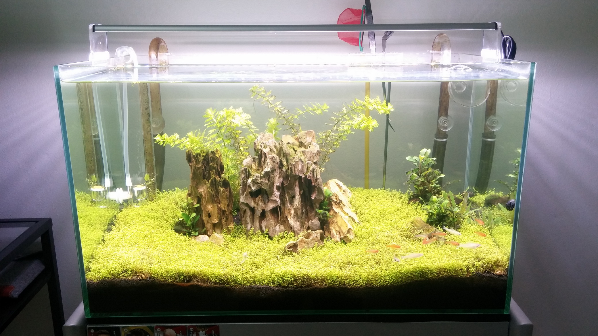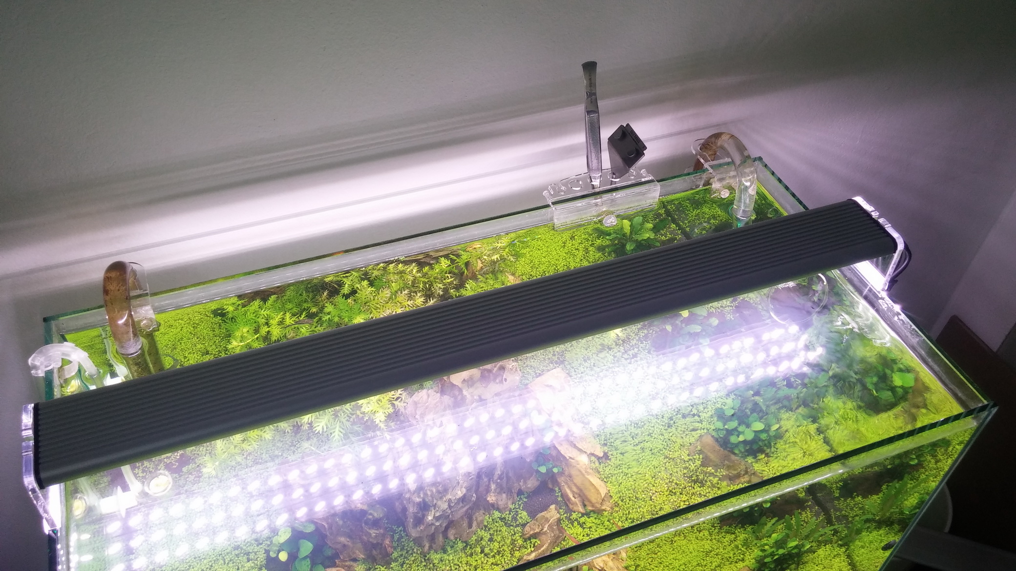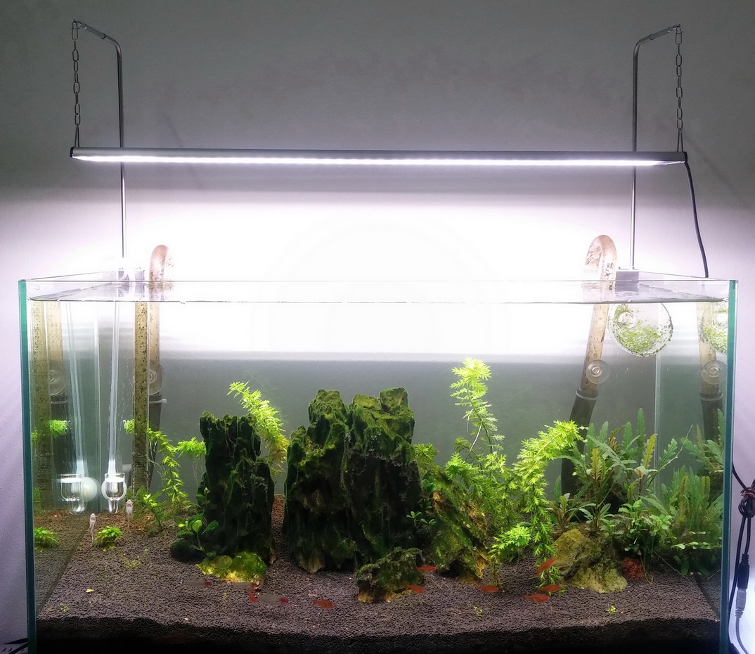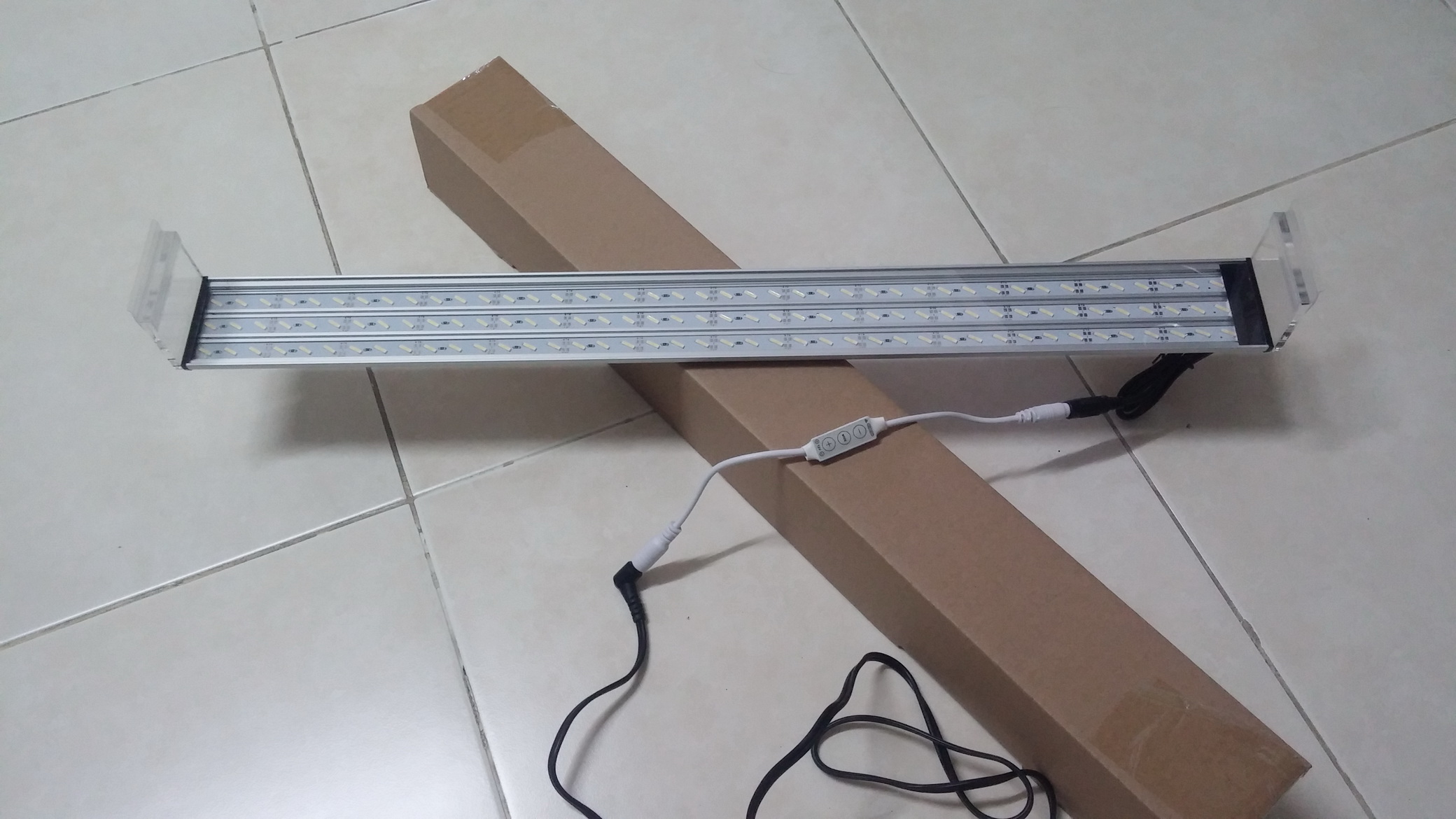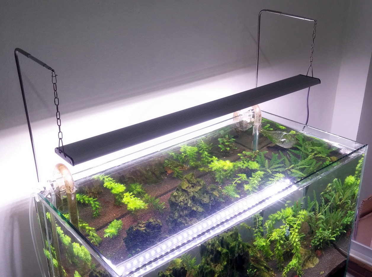 ถ้าเลี้ยงปลาได้ไม่มีปัญหาคับสว่างพอ แต่ถ้าเลี้ยงไม้น้ำ ต้นไม้ริมตู้อาจได้รับแสงไม่พอเพียงคับ ถ้าตู้ 36" แนะนำแบบนี้คับ ใข้โคม LOZ โคมขนาด 15.5" สองอัน จะได้แรงไฟรวม 52w เต็มๆ และรวมความสว่างได้ 7000lm แรงใช้ได้เลยคับ และใช้ขาแขวนของ LOZ สองอัน แขวนแนวเดียวกัน จะสวยพอดี เหลือพื้นที่ใช้สอยสบายๆ