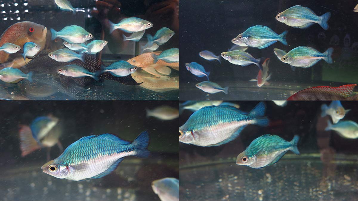 เมื่อโตเต็มที่สีจะเข้มขึ้นโทนฟ้าเขียวเทอควอยซ์บลูครับ ตัวเมียสีจะอ่อนกว่าตัวผู้ เมื่อจะผสมพันธ์สันหัวตัวผู้จะเป็นสีเหลืองแวววาวเงา ๆ ครับ ภาพนี้เป็นไซร์โต