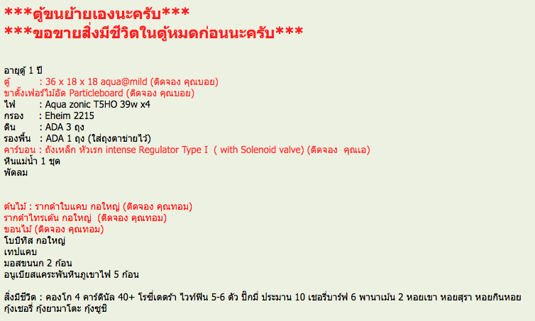 ไฟ        : Aqua zonic T5HO 39w x4 1,500 ติดทุกดวงแต่สวิตเปิดปิดไม่ค่อยดีต้องกดหลายทีถึงติดครบ (ติดจอง)
