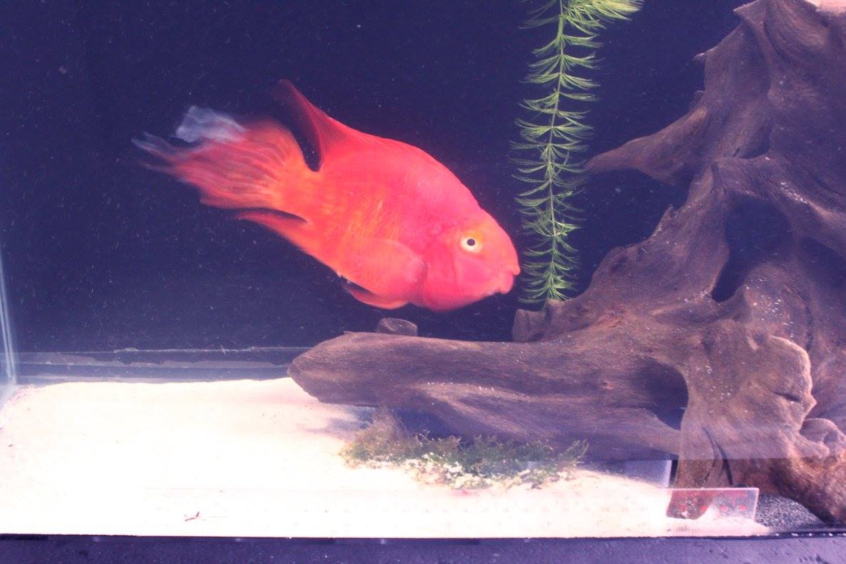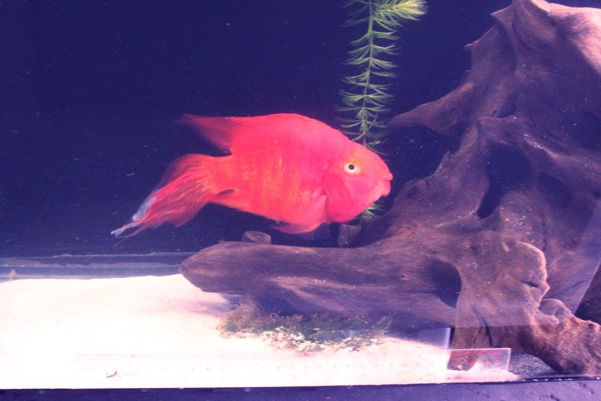 ปลานกแก้วแดงหางยาวสรงพู่กันปลายขาว/ครีบยาว เลี้ยงไว้อยู่ ไซส์ใหญ่ 6-7 นิ้ว เป็นพ่อแม่พันธุ์ได้ ราคา900บาท