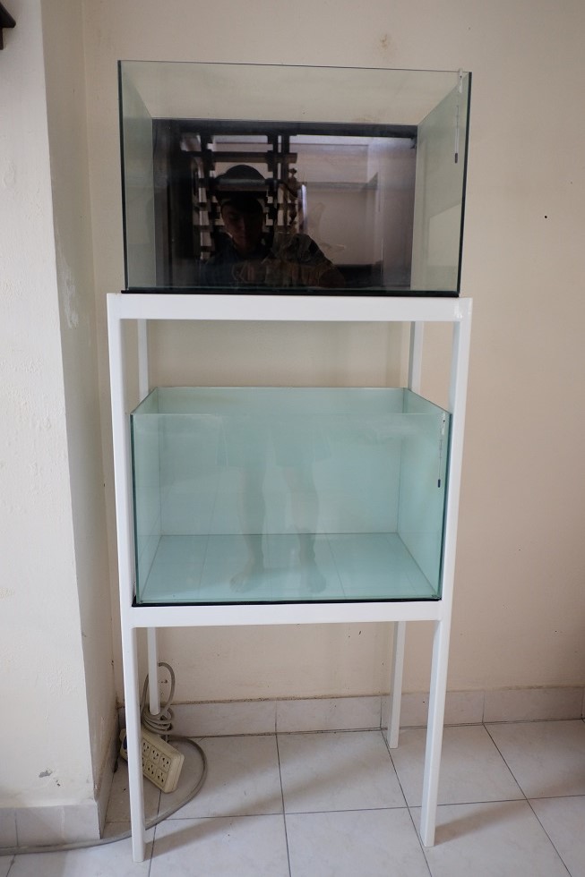 1.ตู้ปลา Sakana san 24x15x15 5มิล ไม่ขอบไม่คาน + ขาเหล็ก 2 ชั้นยกกสูงสีอบสีขาว ขาย 2500 บาท มารับเองนะครับ