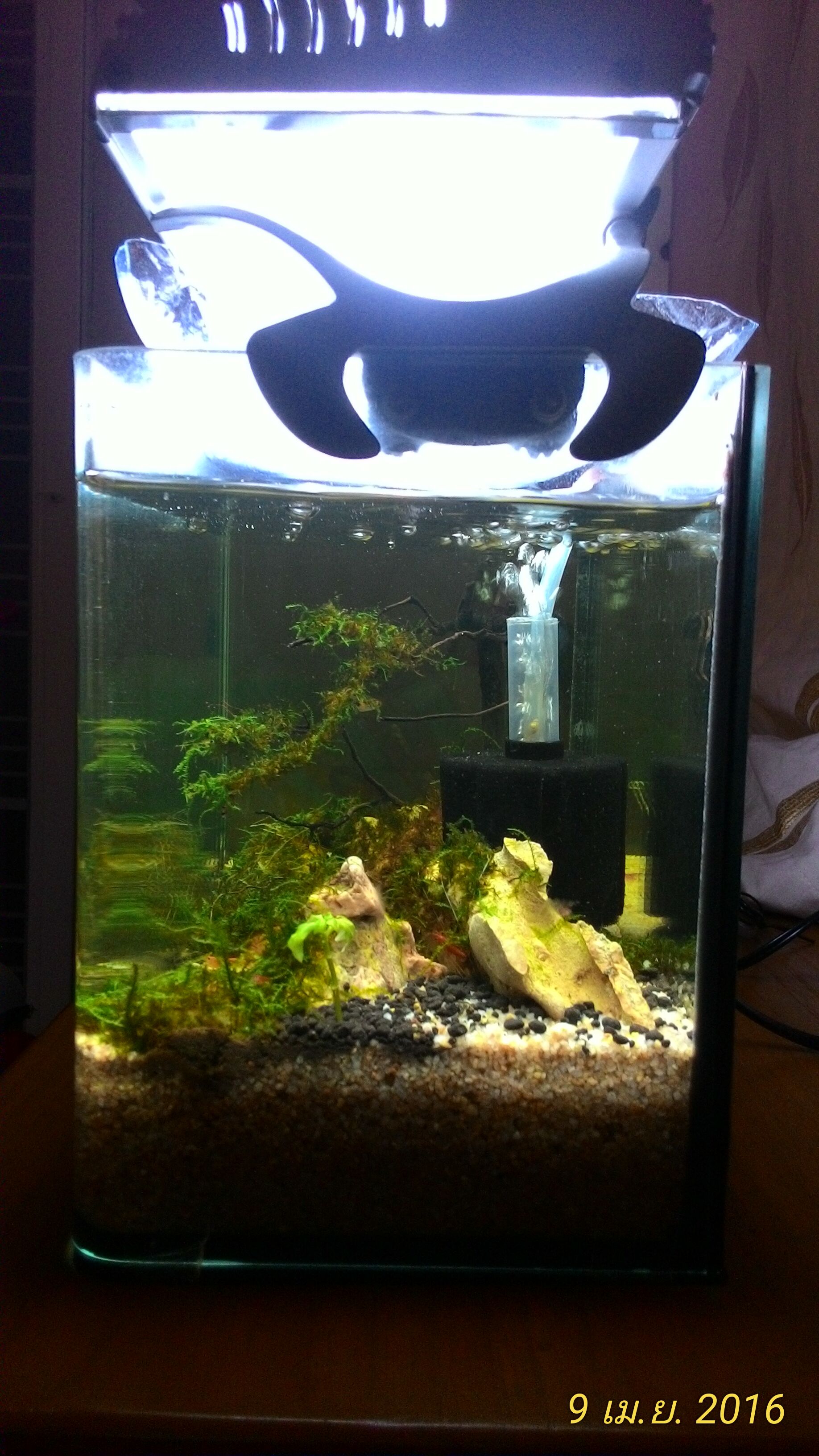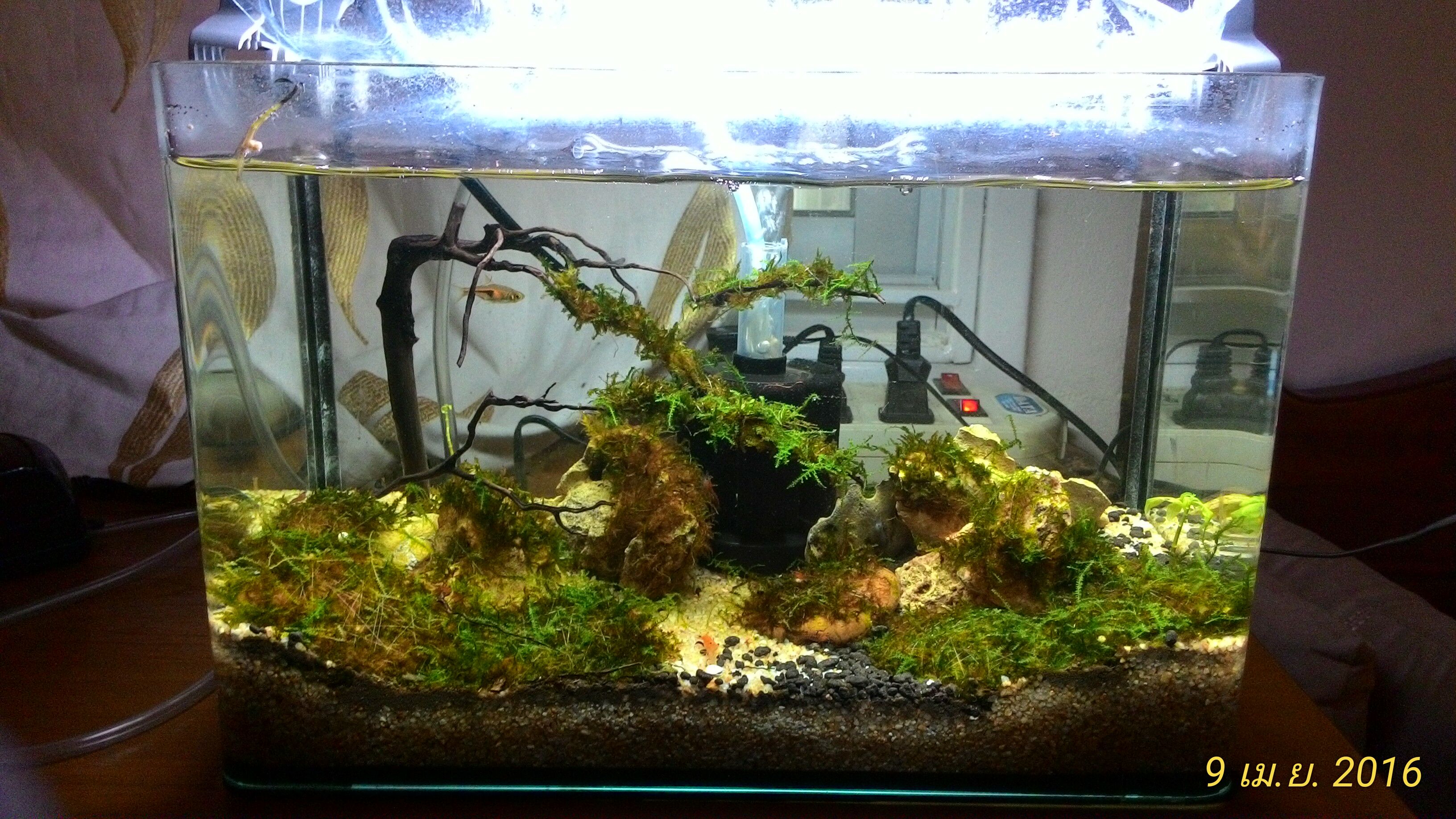ตู้12นิ้วครับ มีปลาซิวข้างขวาน 1 ตัว กุ้งเชอรี่ประมาณ 10 ตัว ตู้ของEJA ไฟ1ตัว กรองฟองน้ำ