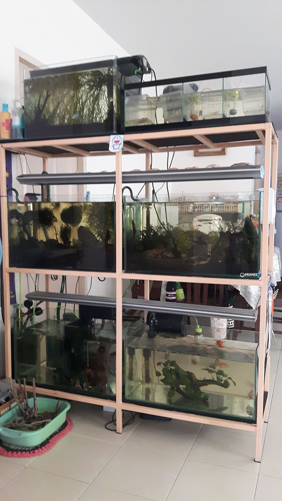 - ตู้เลี้ยงกุ้ง ขอบดำ กว้าง 24 สูง 8 ลึก 10 กั้น 4 มีช่องกรอง แต่ผมปาดกระจกกั้นช่องกรองออก เหลือ 3 ช่อง เล็ก 2 ใหญ่ 1 มีปั๊มน้ำ ท่อฉีดน้ำลงช่องให้ มีกระจกกั้นที่แกะออกให้ไปด้วย ขาย 300.-