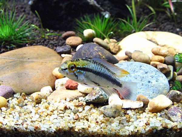 แล้วซื้อบู่แคระตัวกะจิ๊ดมา แต่มันก็ยุ่งกะกุ้งจัง กุ้งเดินผ่านชอบกัด