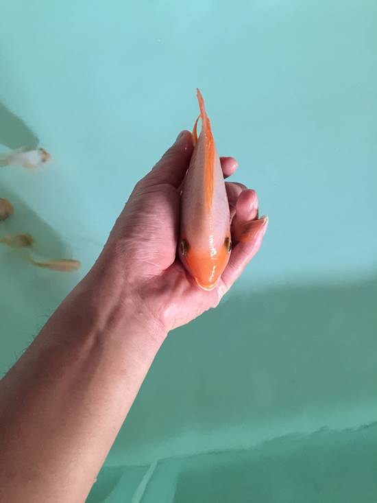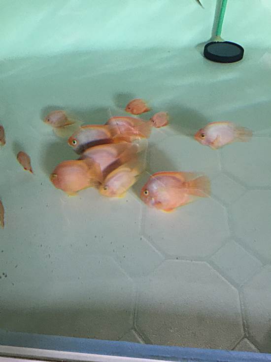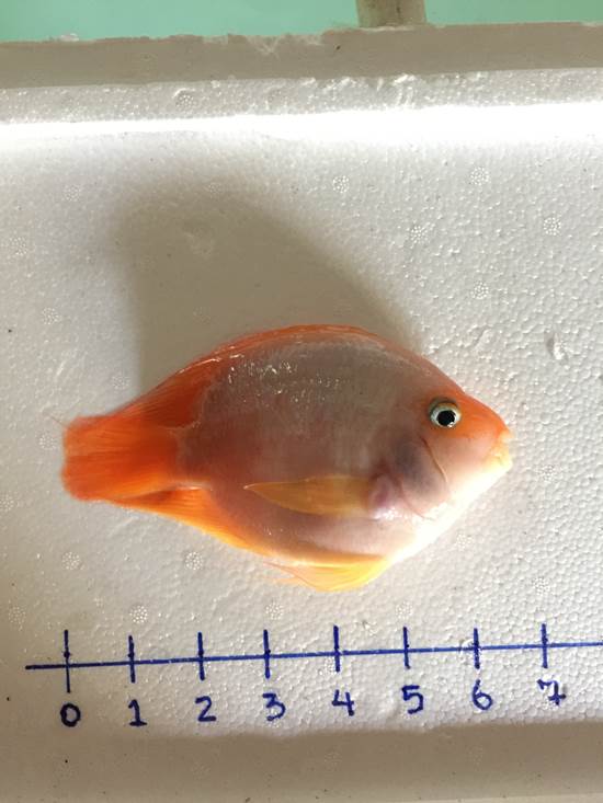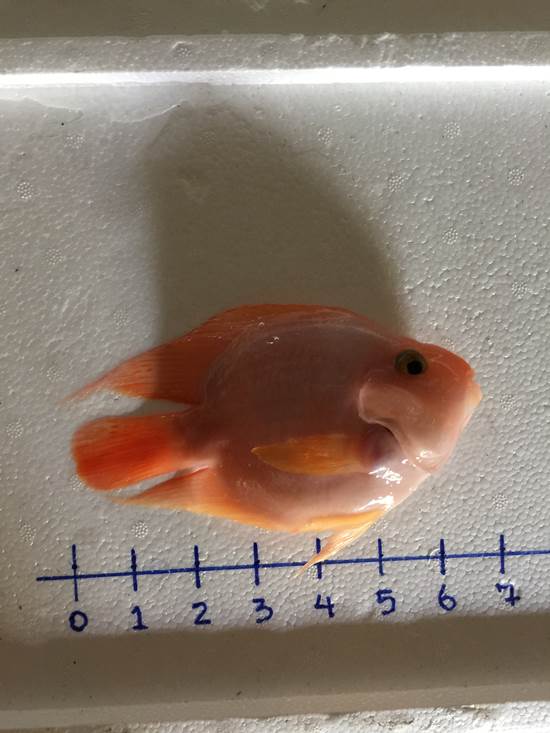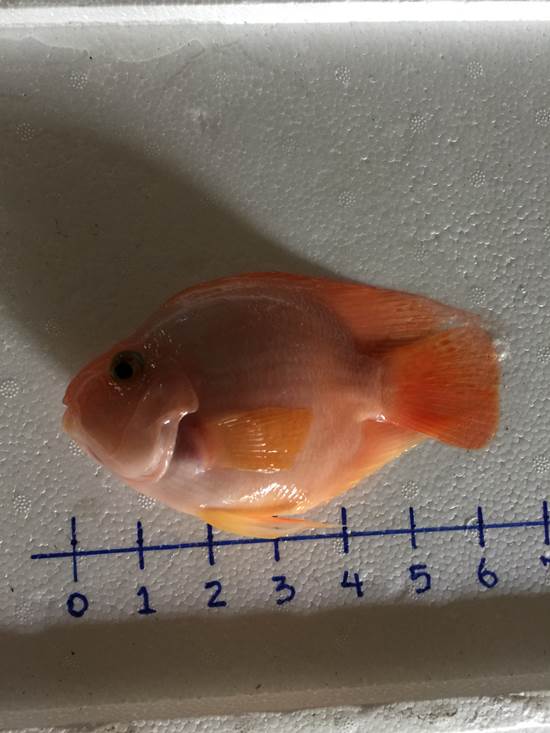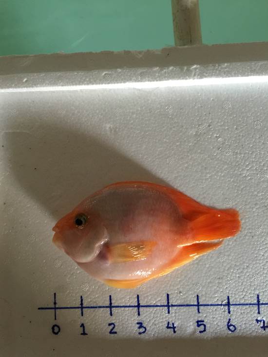 ผมเลี้ยงเป็นปลาเมทในบ่อกระเบน ค่อยเก็บเศษกุ้งฝอยกับเนื้อปลา สีบ่อขาวเลยไม่สด เอาลงตู้ดำสีจะแดงขึ้นครับ