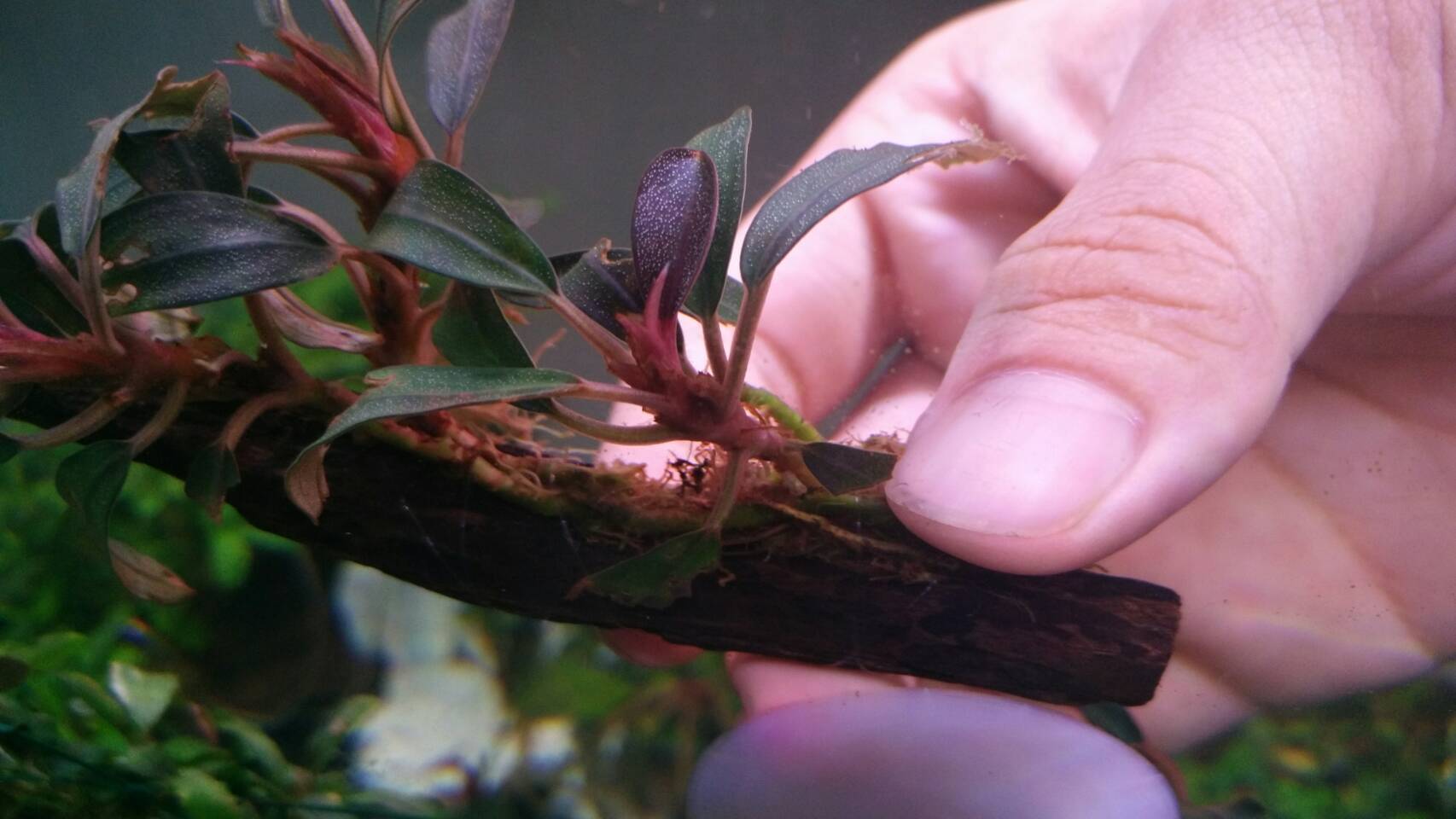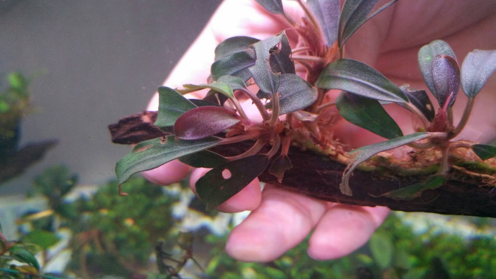 เปิดประมูล Bucephalandra Pinky Mambo สีแดงอ่อนๆ มุกละเอียดใบแตกใบน้ำแล้วครับ ใบน้ำสีม่วงเช่นกัน