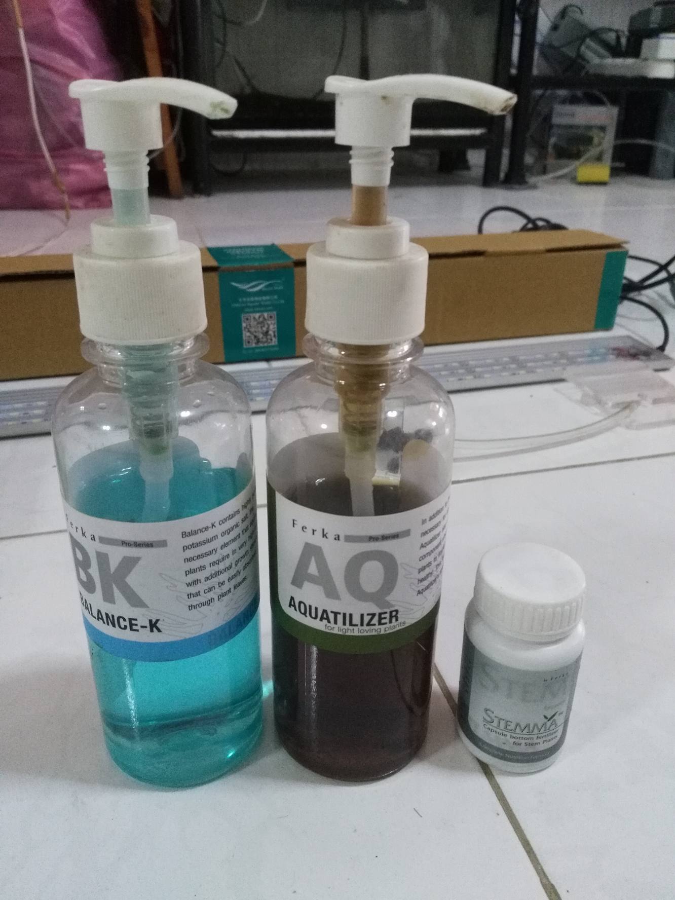 ขายเหมาๆ ปุ๋ย Ferka เหลือเท่าที่เห็นครับ  2 ขวด  + ปุ๋ยฝัง Stemma Ferka 20 เม็ด (ยังไม่เคยใช้) = 350 บาท (Ems + 50) ---- ติดจองคับ