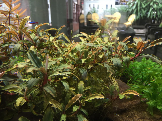 ไม้พุ่ม วางเป็นพุ่มกลางตู้หรือวางข้างหิน ขอนไม้ จะไหลไต่ระเรียดอย่างสวยงามครับ
