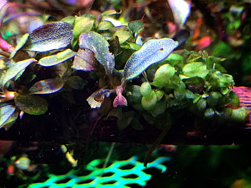 เปิดประมูล Bucephalandra Brownie Blue ติดมอส 1 ขอน เพิ่งเลี้ยงในไฟสี