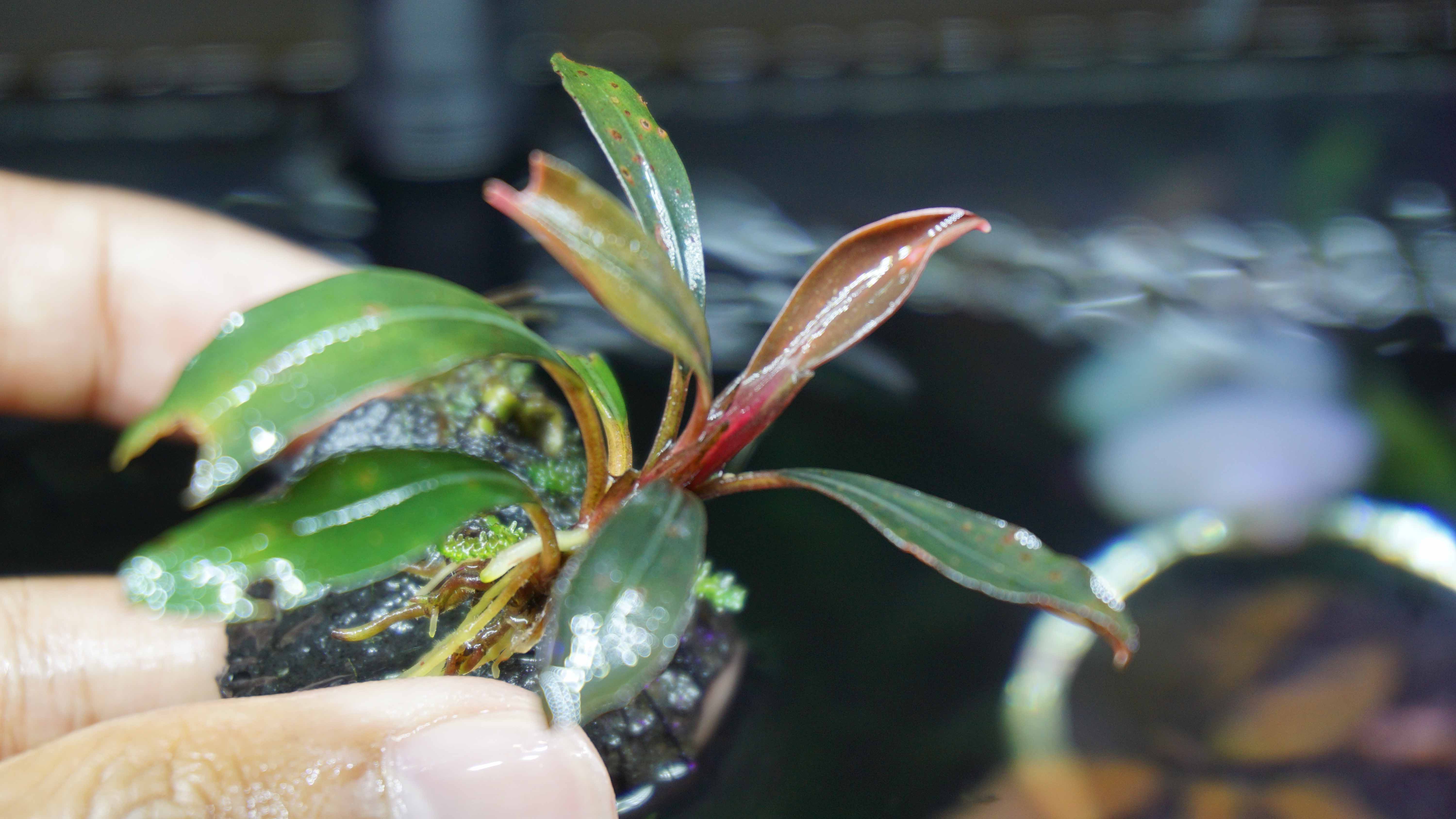 เปิดประมูล : Bucephalandra pygmaea "Kapit" ใบน้ำออกสีส้มชัดเจน ยอดลำต้นสีแดงสด