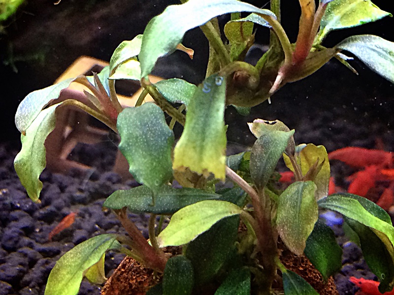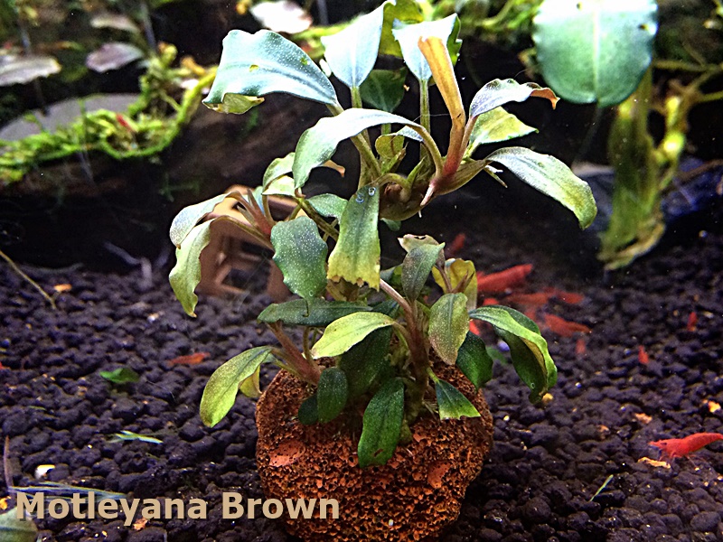 เปิดประมูล Bucephalandra Motleyana Brown ติดหินกำลังโตดีใบน้ำ 1กอ