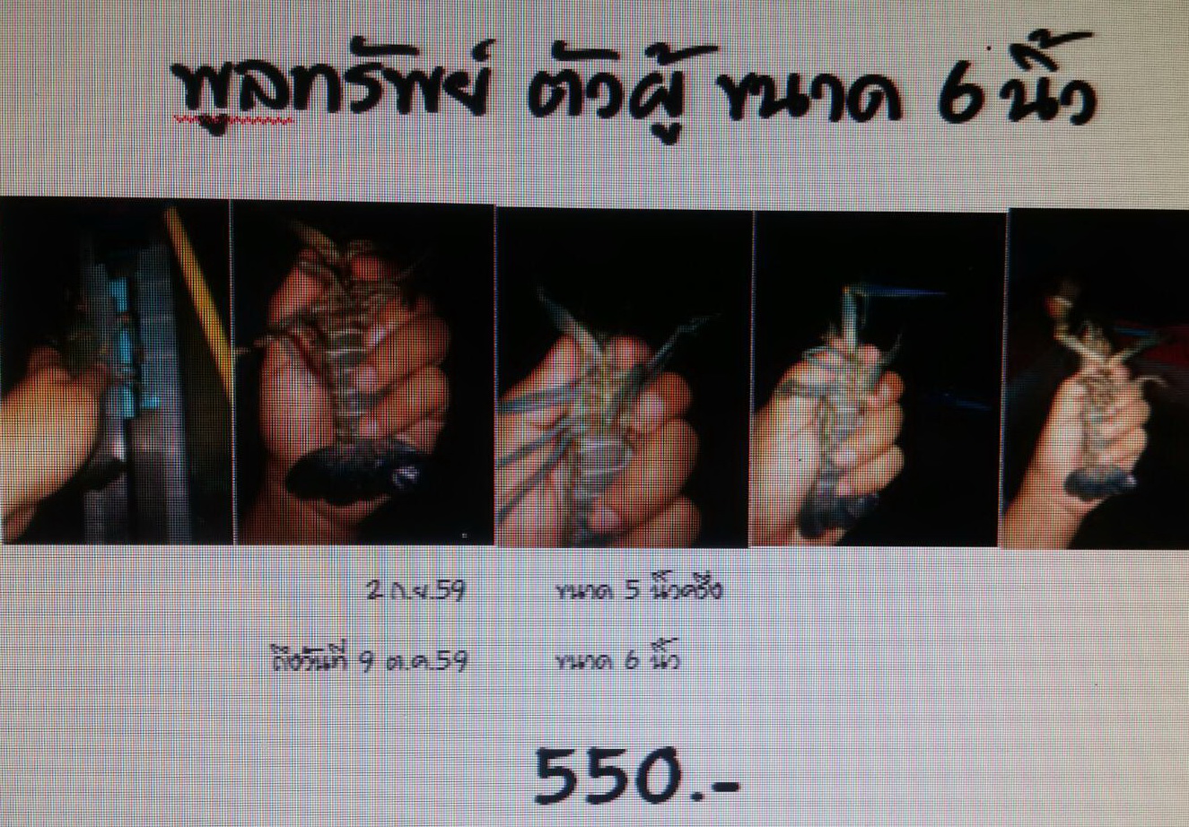 มีขนาด ผู้ 6 นิ้ว+ ราคา 450.-     เมีย 5 นิ้ว+ ราคา 850.- (คู่ละ 1,200.-)