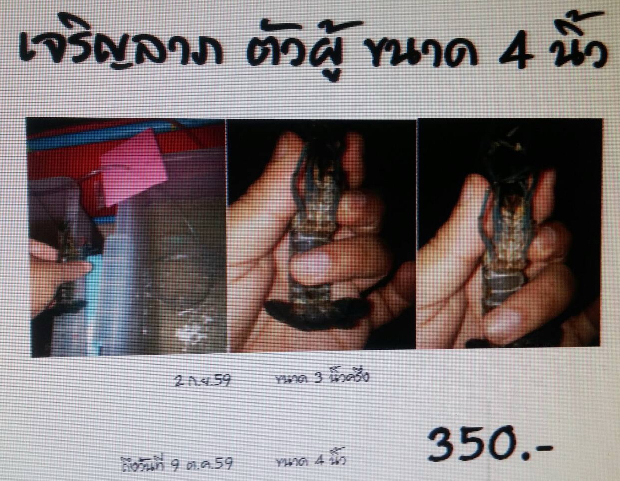 ผู้ 4 นิ้ว  ราคา 350.-     เมีย 4 นิ้ว  ราคา 600.- (คู่ละ    800.-)
