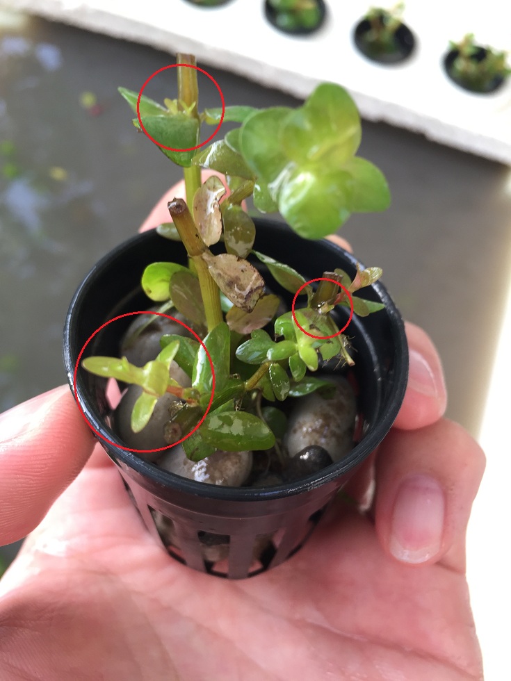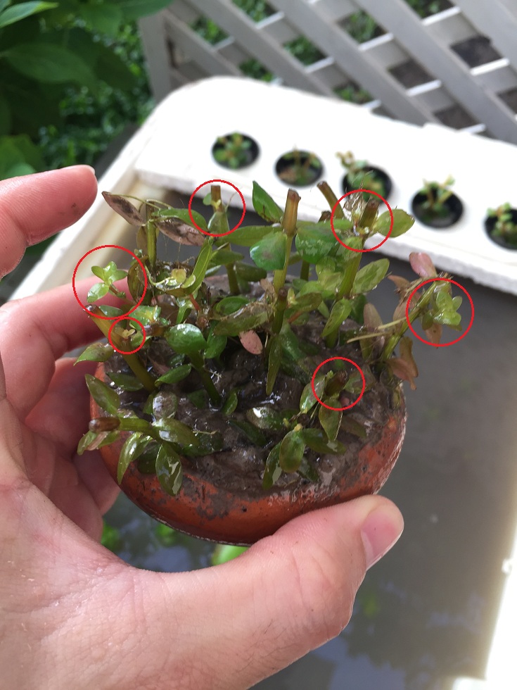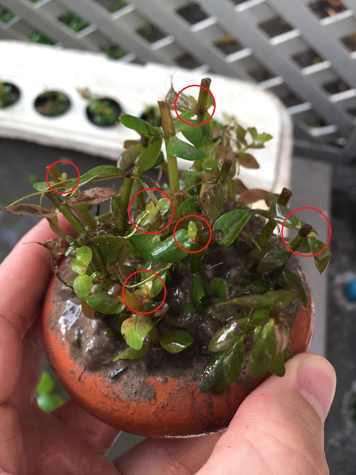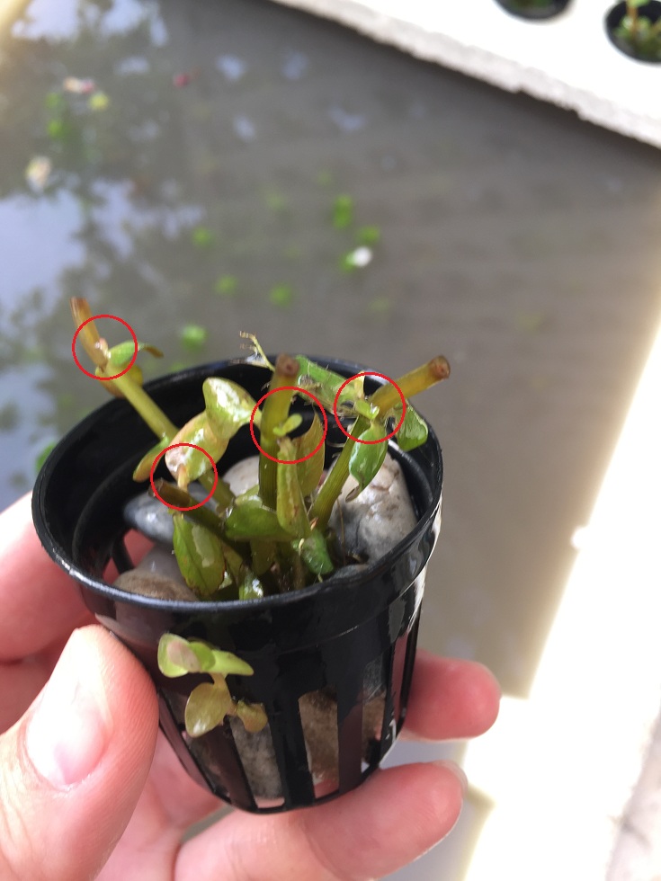 2. โรทาล่าทับทิม ปลูกกรวด (ใบน้ำกำลังงอก)  กระถางละ 20บาท
