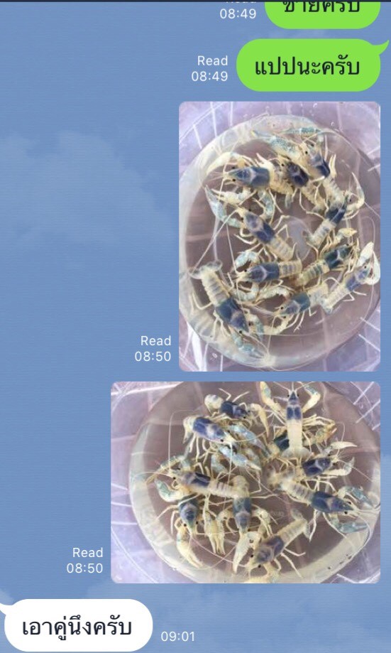 1. โกสแท้สายบลูแบล๊ค เพศผู้ ก้ามสองสี ขนาด 2.6 นิ้ว ตัวนี้สายบลูแบล๊คครับโตมาหัวจะออกโทนน้ำเงินดำครับ ราคา 2500 บาท