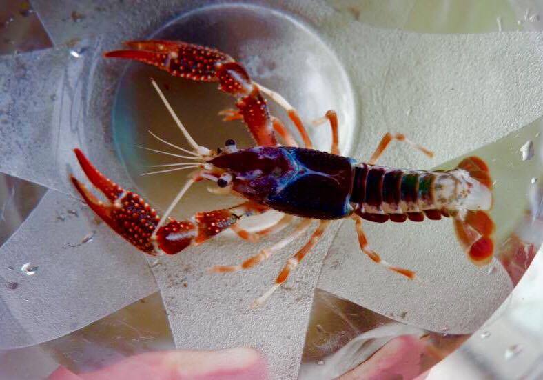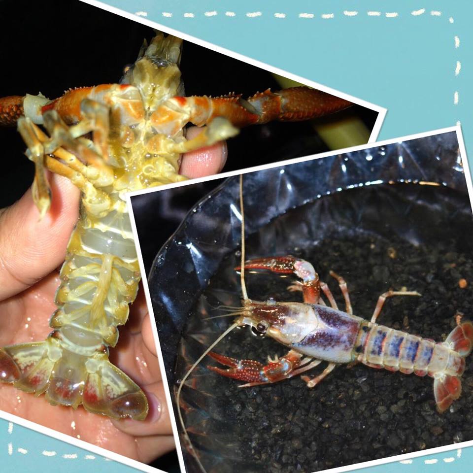 สีขาวม่วง หัวรูปปีกผีเสื้อ ก้ามและหางโทนส้ม