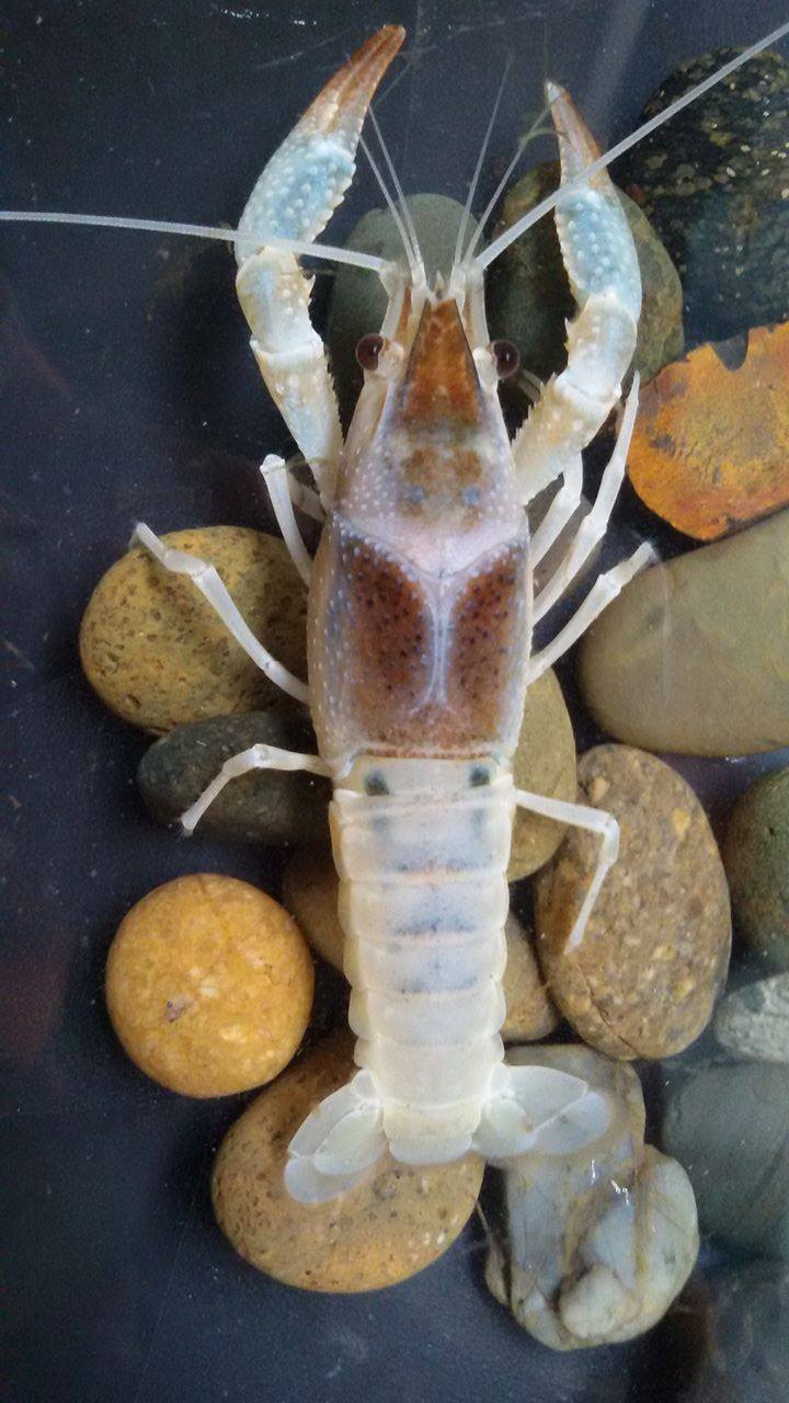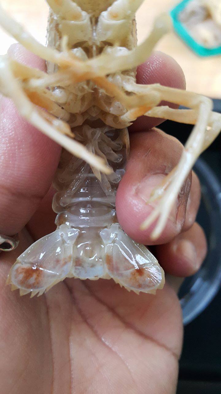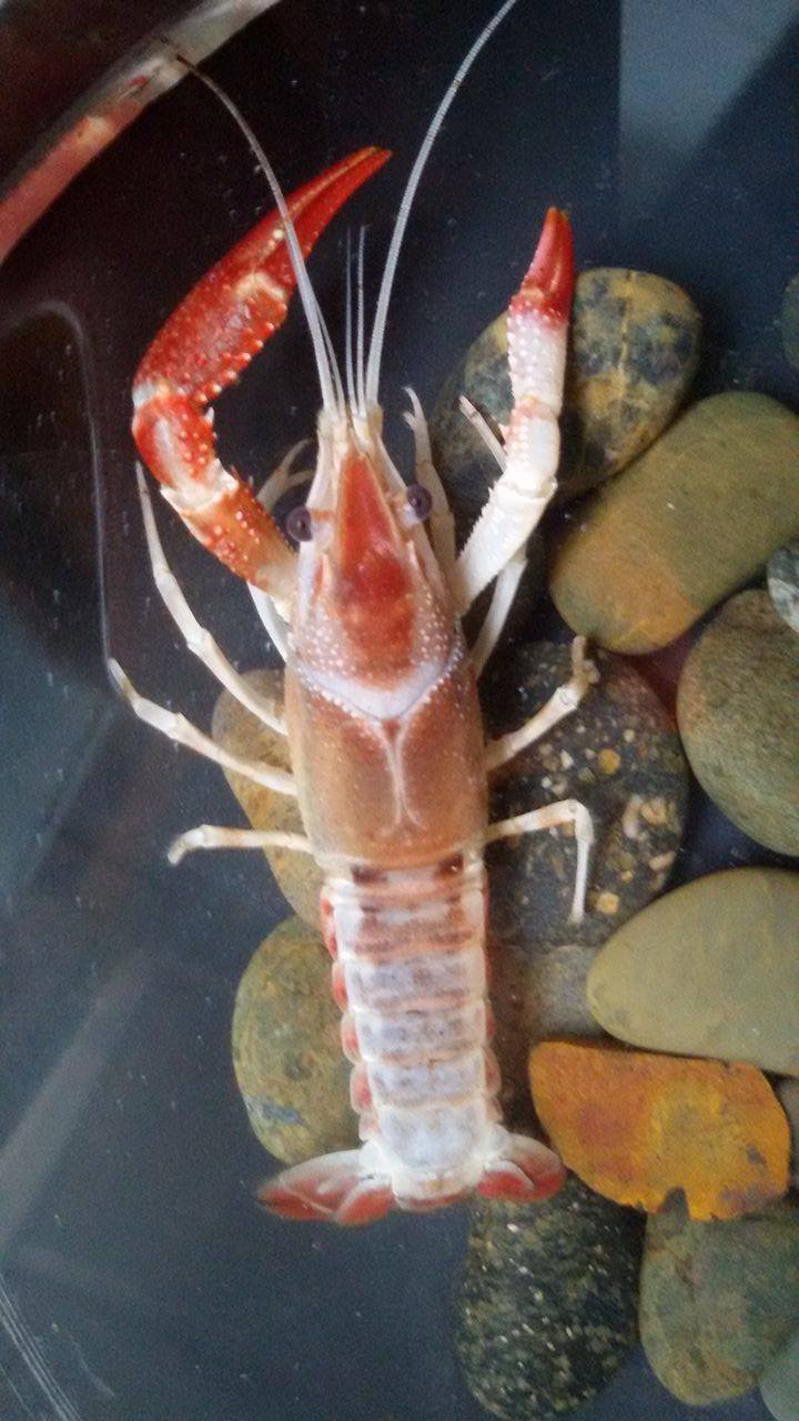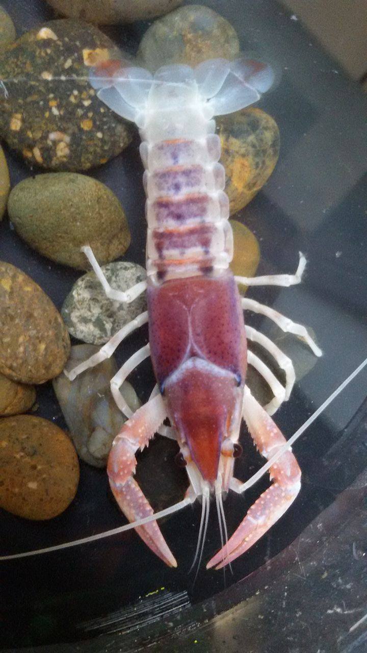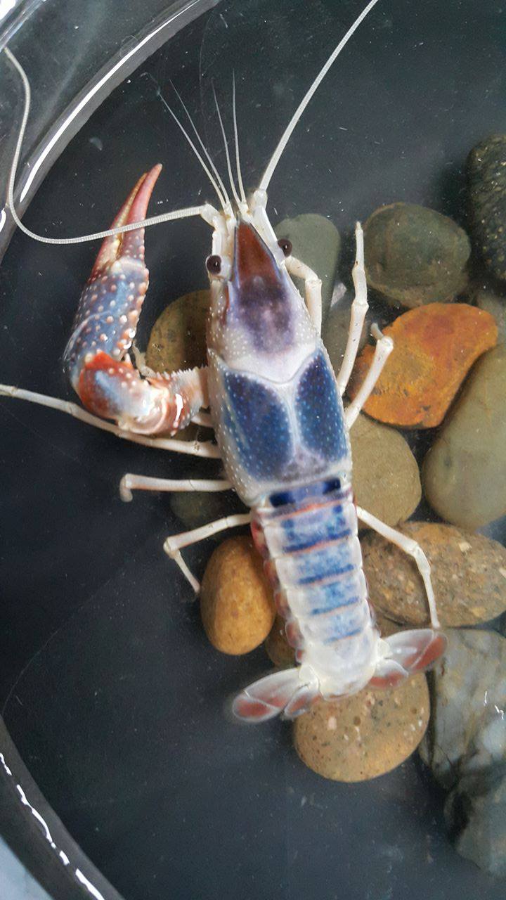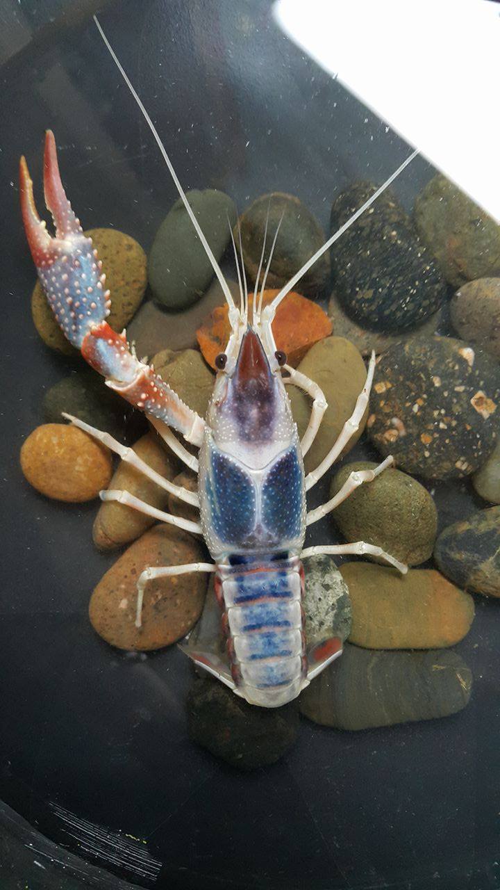 M6  โกสแท้ เพศผู้ ขนาด 2.6" หัวด่างๆ หลังสีน้ำตาล ก้ามสีแดง  หาง5ดอก ขาเท่า หนวดเท่า