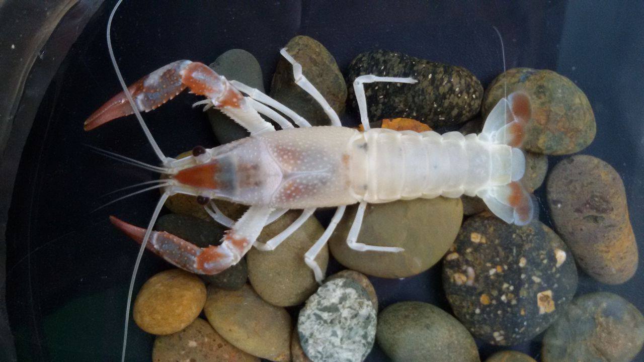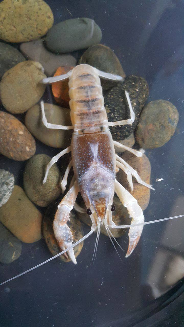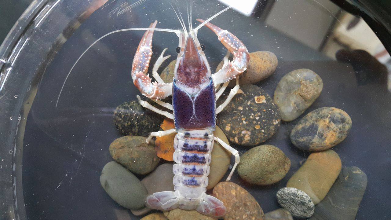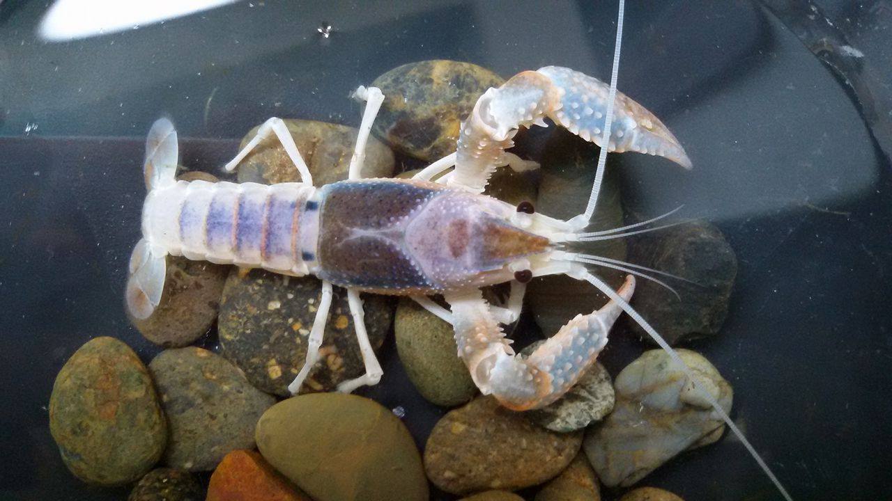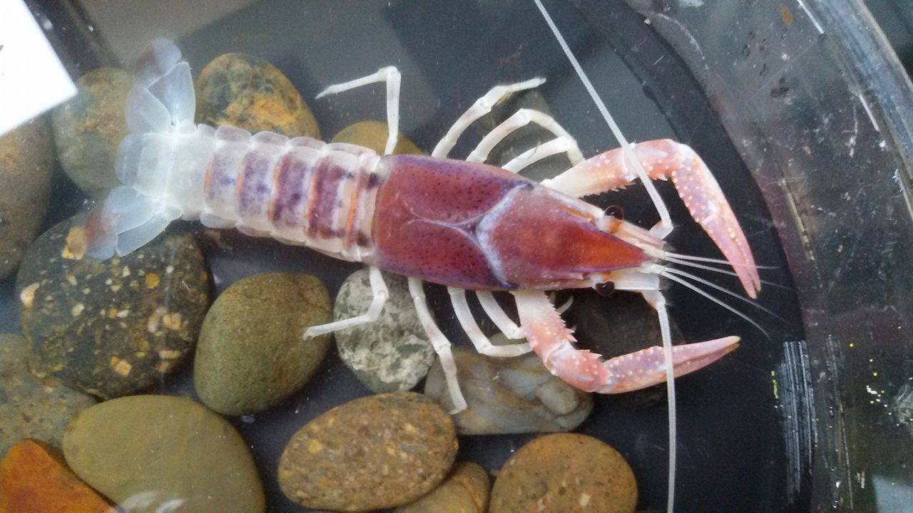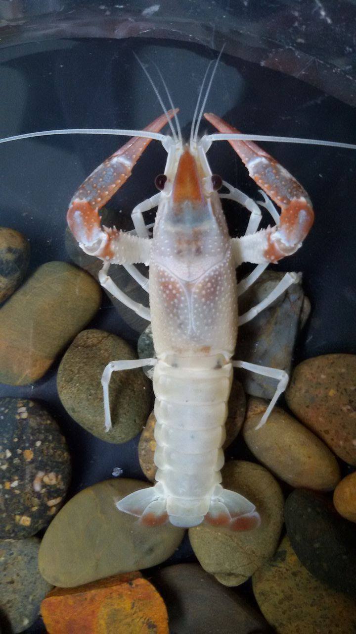M6  โกสแท้ เพศผู้ ขนาด 2.6" หัวด่างๆ หลังสีน้ำตาล ก้ามสีแดง  หาง5ดอก ขาเท่า หนวดเท่า
