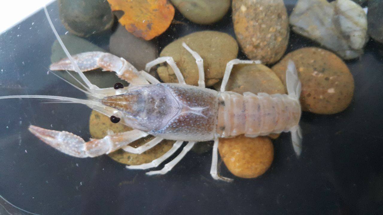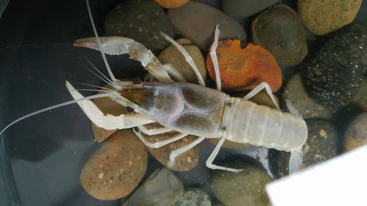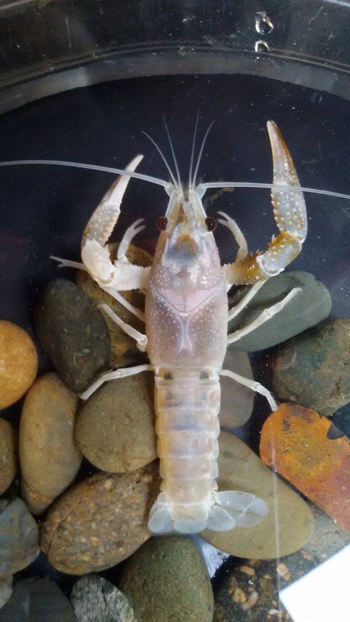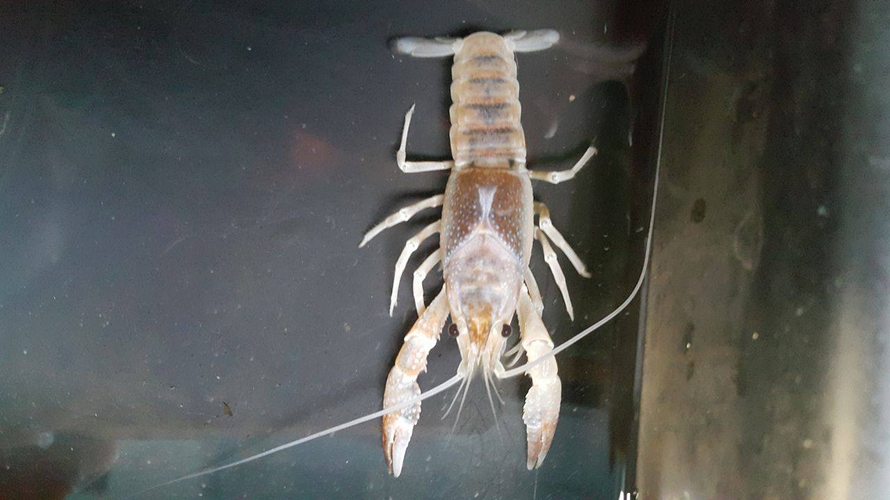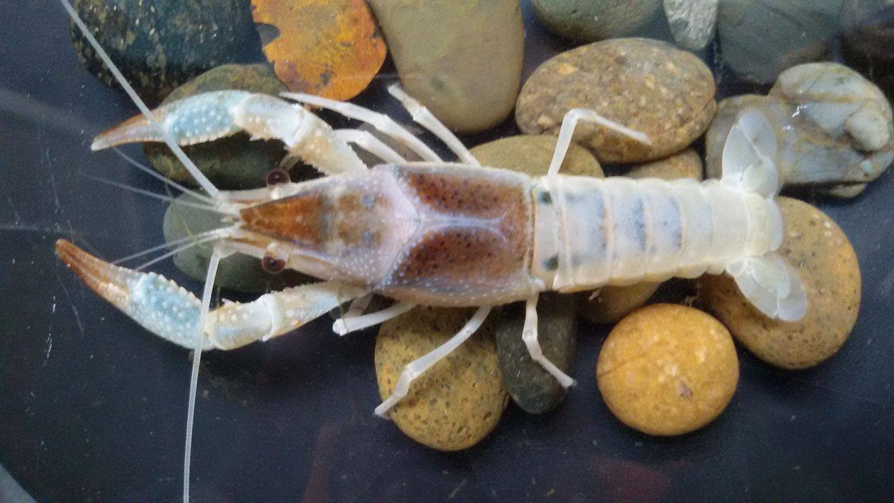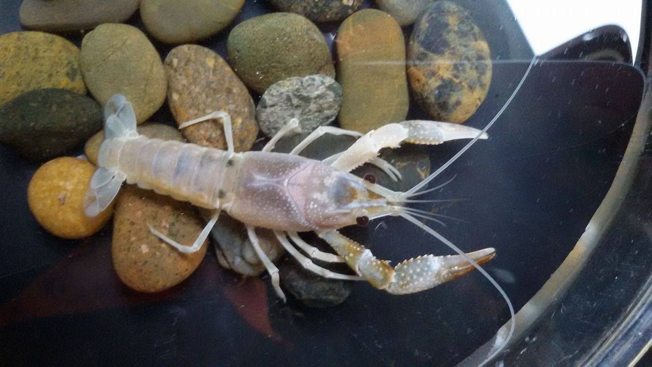 M6  โกสแท้ เพศผู้ ขนาด 2.6" หัวด่างๆ หลังสีน้ำตาล ก้ามสีแดง  หาง5ดอก ขาเท่า หนวดเท่า