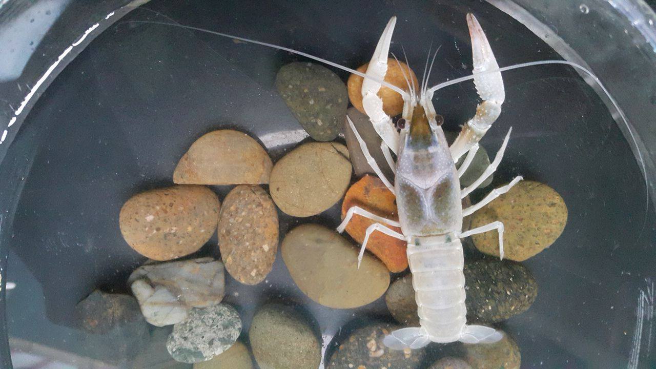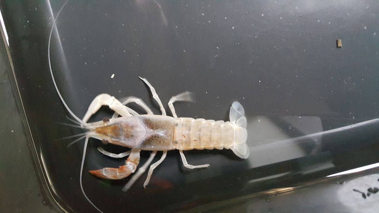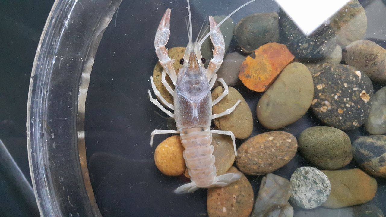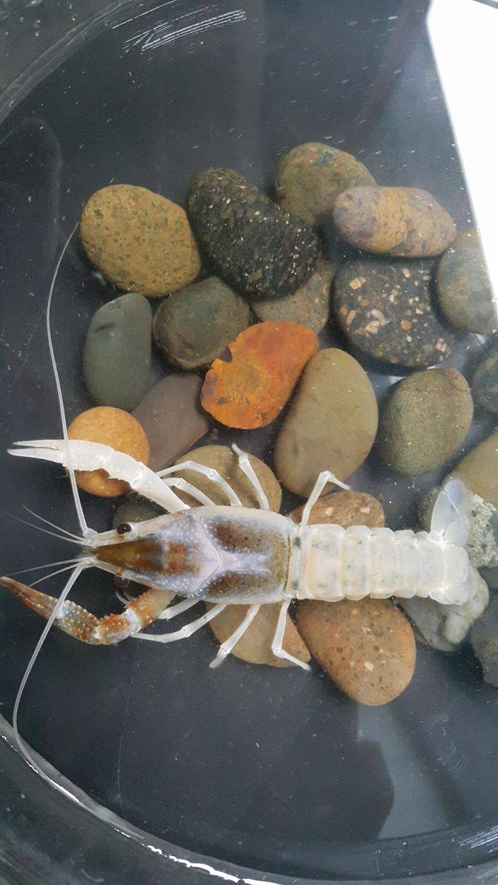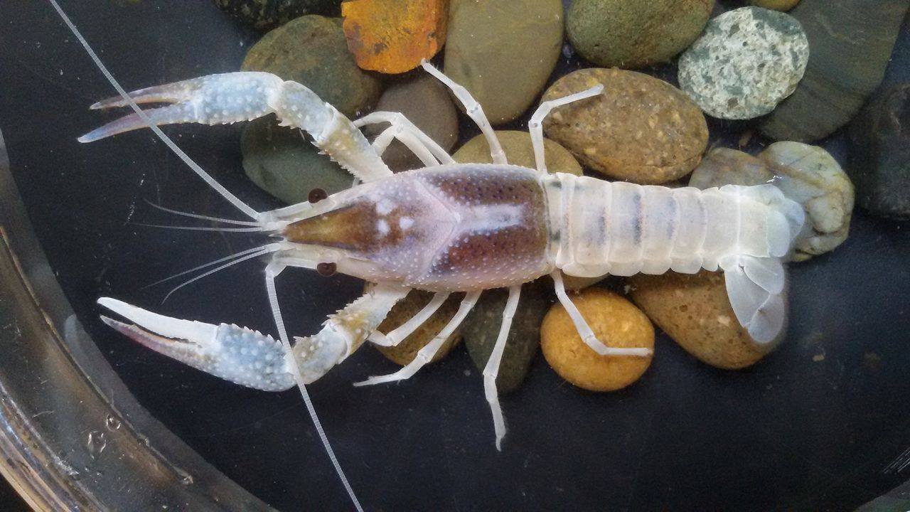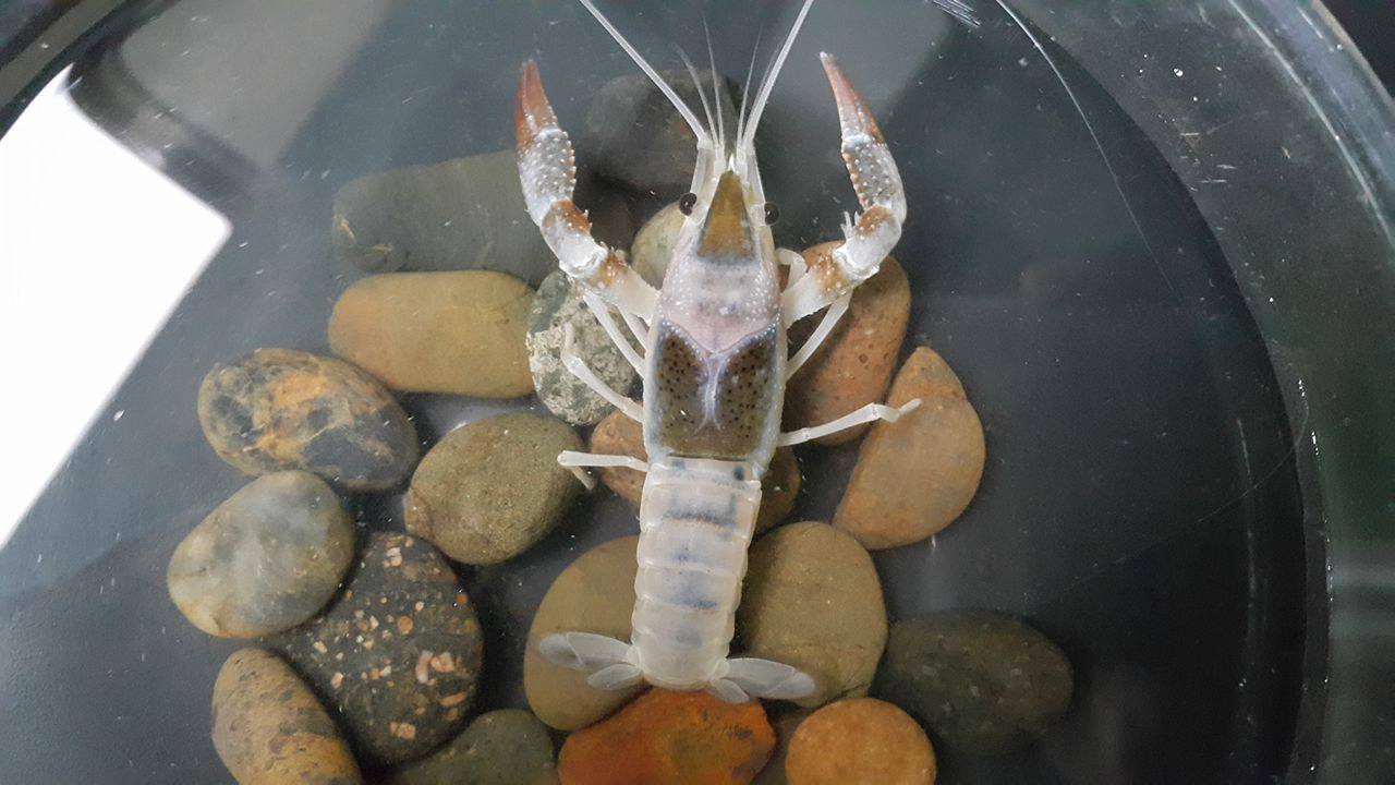 M6  โกสแท้ เพศผู้ ขนาด 2.6" หัวด่างๆ หลังสีน้ำตาล ก้ามสีแดง  หาง5ดอก ขาเท่า หนวดเท่า