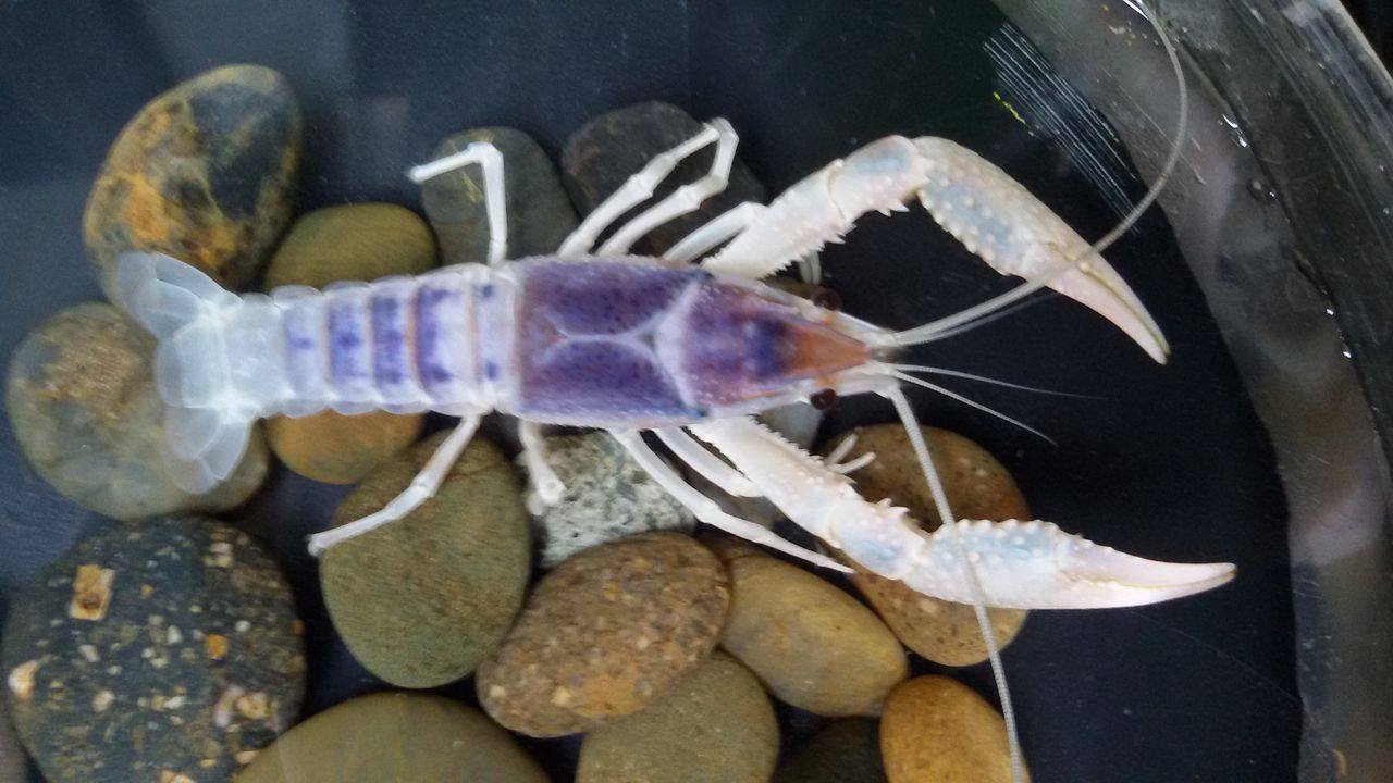F2  โกสแท้ เพศเมีย ขนาด 3.2" สีน้ำเงินอมม่วง สีเข้มๆ ก้ามม่วงๆ  ก้ามเท่า หนวดเท่า ขาครบ  ฝ้ามาแล้ว