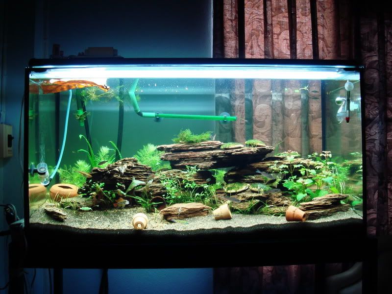 มอสที่เห็นยังไม่ได้พันรอซื้อหินก้อนเล็กๆมาพัน เลยเอาใส่ตะแกรงไว้ก่อน หุหุ ตู้ไม่สวยน่ะครับ จัดตู้ไม่เป็นอ่ะ jealous