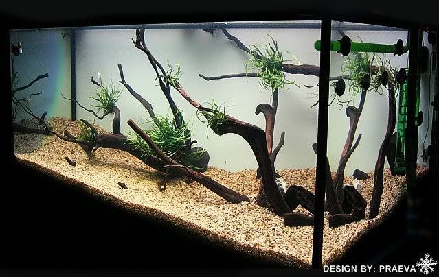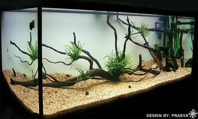 ขอนไม้วางสวยดีแล้ว แบบนี้ไม้หลังตู้ก็ไม่ควรเป็นไม้ข้อเพราะมันจะทำให้กิ่งไม้ไม่เด่น หลังตู้น่าใช้วิวิพาล่า หรือเทปแคบ