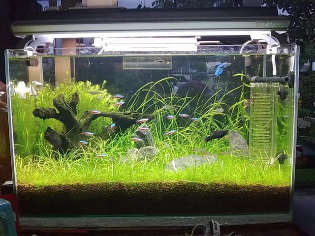 ตู้แรก 18*14*15 ไฟ Boyu 24W + Flu 865 18W กรองแขวน ดิน ADA