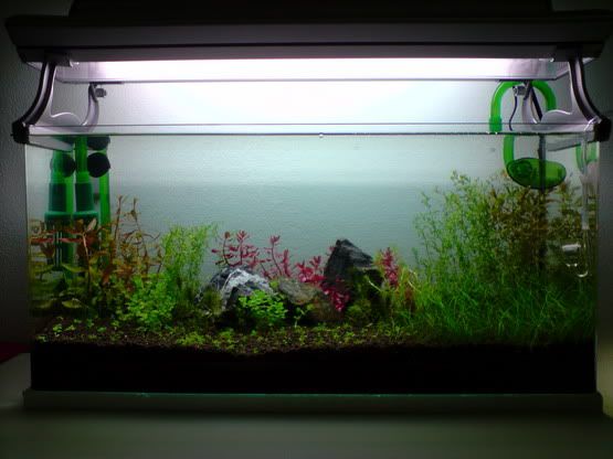 การเริ่มตั้งตู้ใหม่ ใช้ไฟรางเดียวไปก่อนค่ะไม่งั้นตะไตร่จะมาค่ะ รอต้นไม้เริ่มโตแล้วเสริมไฟเพิ่มค่ะ