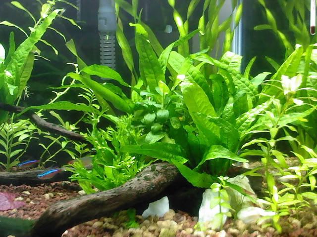 มันเป็นต้นไม้ในอ่างปลาหน้าบ้านน่ะครับ เริ่มแรกใบมันจะใหญ่ ๆ สีเขียวเข้ม เรียบน้ำเหมือนใบบัว พอลองมากดลงตู้ดูปรากฏว่า ใบที่แตกใหม่มันออกเป็นยาว ๆ แบบนี้น่ะครับ