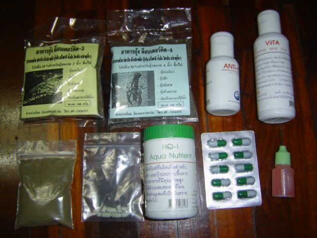 4. ยากำจัดเชื้อรา และแบคทีเรีย 1 และ น้ำยา Anti ich สำหรับรักษาโรคแผลใหม้ในกุ้ง