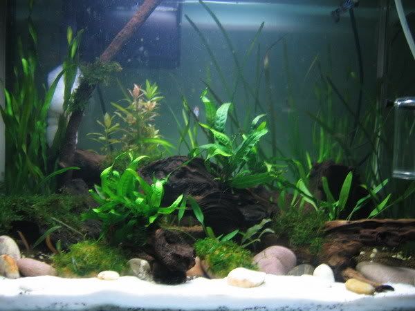 เริ่มเลี้ยงไม้น้ำครั้งแรกเลยนะ เมื่อตอนปี 48 กำลังจะเอนทรานซ์ ไปสอบที่เกษตร ชอบไปเกษตรเพราะมีพิพิธภัณฑ์กรมประมง ไปทุกวันจนเจ้าหน้าที่เค้าบอกว่า "น้องจะมาเอ็นคณะประมงหรอครับ"  ้hahaha แหม ถ้าผมเรียนสายวิทย์มาคงเอ็นไปแล้วล่ะครับ เสียดายไม่รูปถ่ายตอนนั้นครับ ปลูกในทรายขาวอ่ะ  ้hahaha แถมปักเป็นกำด้วย จะรอดมะ หลังจากนั้นก็เห็นโฆษณาของร้าน All Fish ว่ามีดินภูเขาไฟขาย ยี่ห้อ Volcamia ล่ะ ก็เลยไปซื้อมา ก็น้ำใสดี แต่ก็เลิกเลี้ยงไปปีหนึ่ง เพราะได้ทุน ก็เลยไม่สนใจอะไร