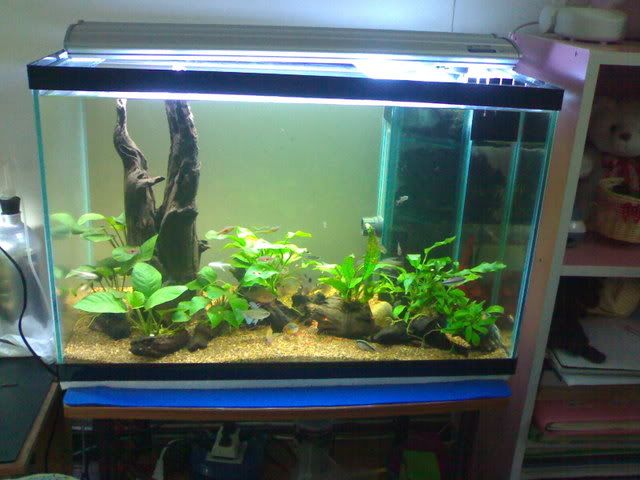 อย่างที่สอง แอบเห็นกรองมุมระดับน้ำ มีการตกกระทบเยอะไหมครับ เพราะเห็นระดับชั้นมันยังต่างกันเยอะเลย ถ้าน้ำกระทบกันดังจ๊อกๆๆๆก็อยากแนะนำนิดนึงว่าให้เอาุถุงพิมมัสก็ได้ มาต่อกันให้มันลงแบบ SOFTๆ จะดีกว่าครับ เพราะเป็นการลดการสูญเสีย ก๊าซคาร์บอนในน้ำครับ แต่ก็ไม่เป็นไรเท่าไหร่ครับเท่าที่ดูไม้ในตู้ ไม่ค่อยต้องการคาร์บอนสูงเท่าไหร่ครับ [เย้ะ] สู้ๆครับๆ