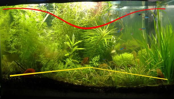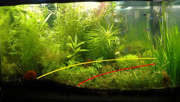 เส้นสีเหลืองคือแนวปลูกของ ADA ของผมสีแดง
