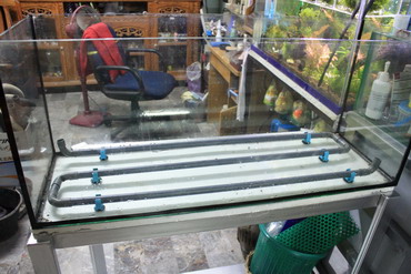 เเล้วก็ DIY ระบบ กรองใต้ตู้ จากท่าร้อยสายไฟเหลือๆที่บ้าน ผลออกมาก็ตามรูป เลยครับ
